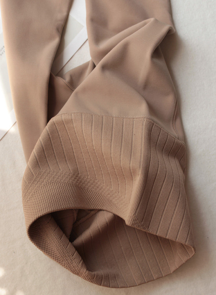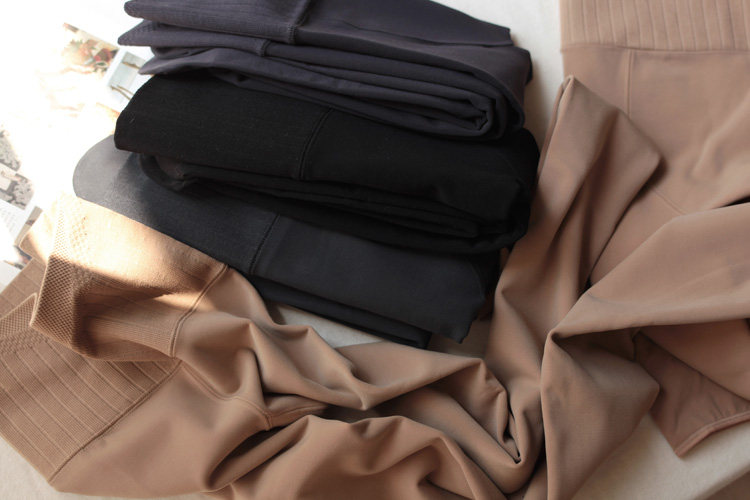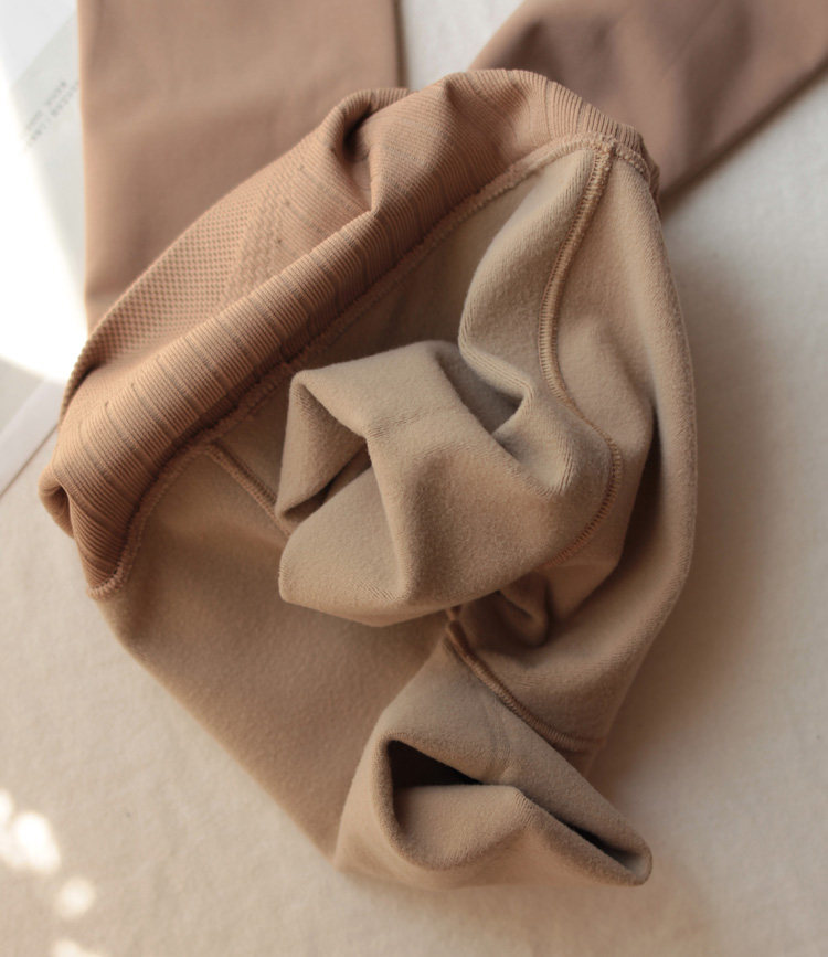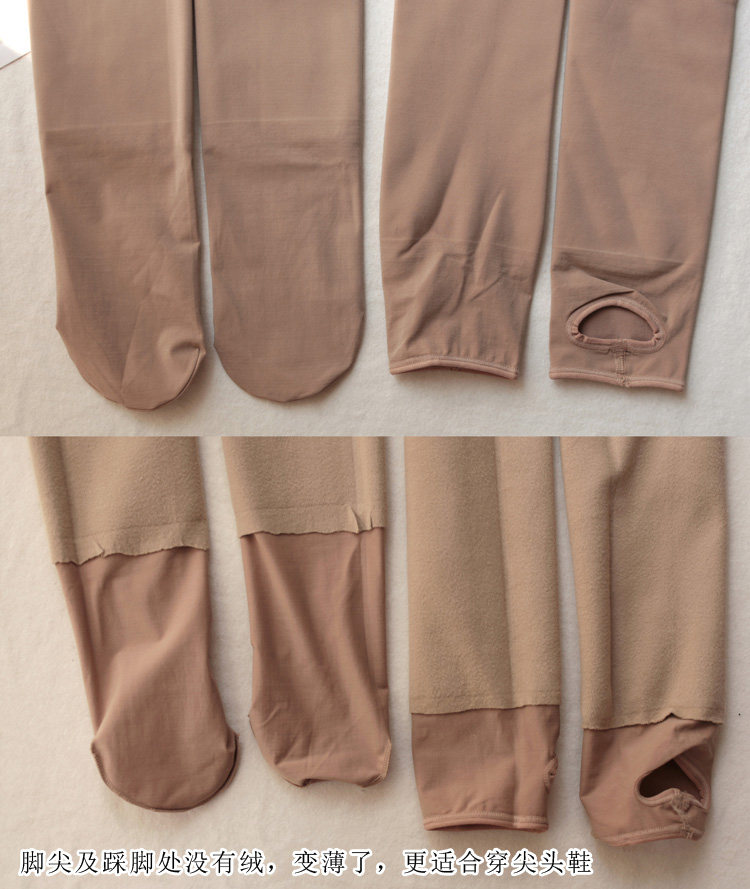 面料特點 | 絲質,細膩面膜質感。 內有嬰兒毛般柔軟的細密磨毛絨,滑滑順順的,手感很獨特。 面料柔軟舒適,吸濕透氣,抗勾絲抗起毛,耐穿,質感高檔。 彈力很大,中等壓力,啞光顯瘦。 防卷邊高腰,束腰收腹提臀,美體效果棒棒的。 襠部采用外穿車線,如果露出一點臀部不至于尷尬。 腳尖及踩腳處無絨,變薄了方便穿尖頭鞋。 |