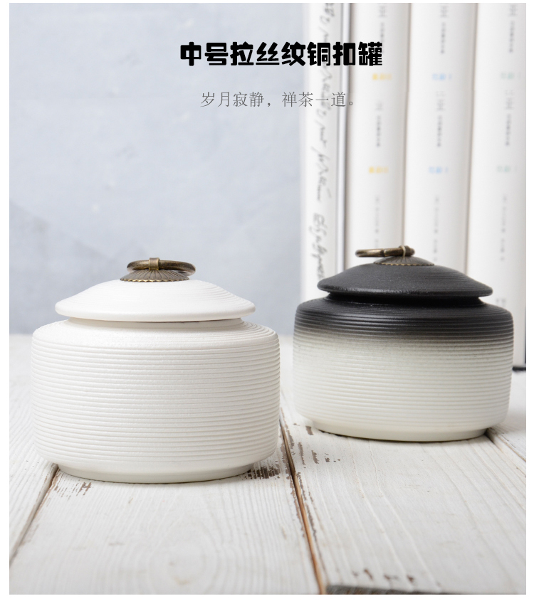 復古粗陶密封罐拉絲無釉醒茶罐防潮普洱茶倉大小號粗陶銅扣茶葉罐