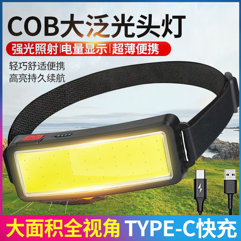 泛光強光超亮頭戴頭燈COB充電戶外照明手電露營夜釣魚燈 防水超輕