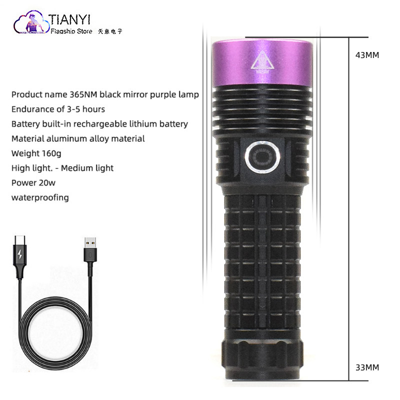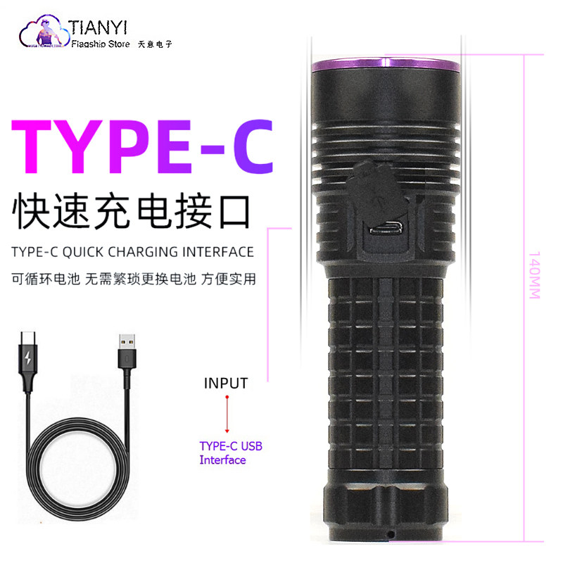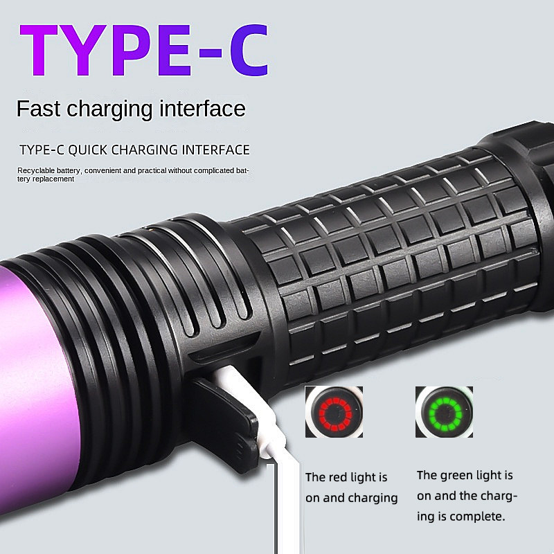 大功率紫光手電筒UV黑鏡紫光燈60W熒光防偽油污檢測365NM充電手電