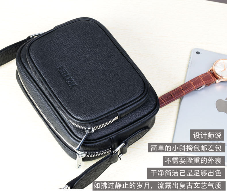 迷你單肩包男士真皮挎包斜肩包橫款軟皮小包斜跨小背包休閑潮男包