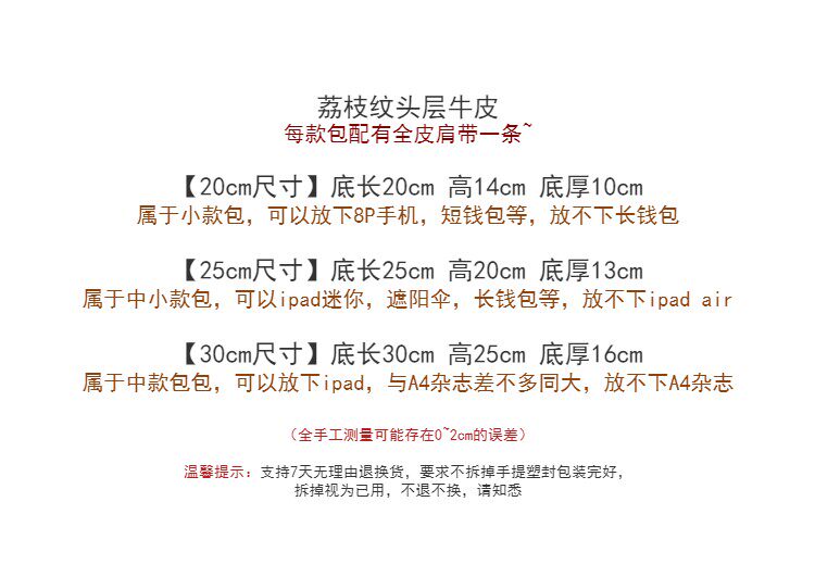 25cm屬于中小款,適合平時既要手提又會單肩斜挎的妹子