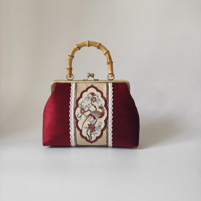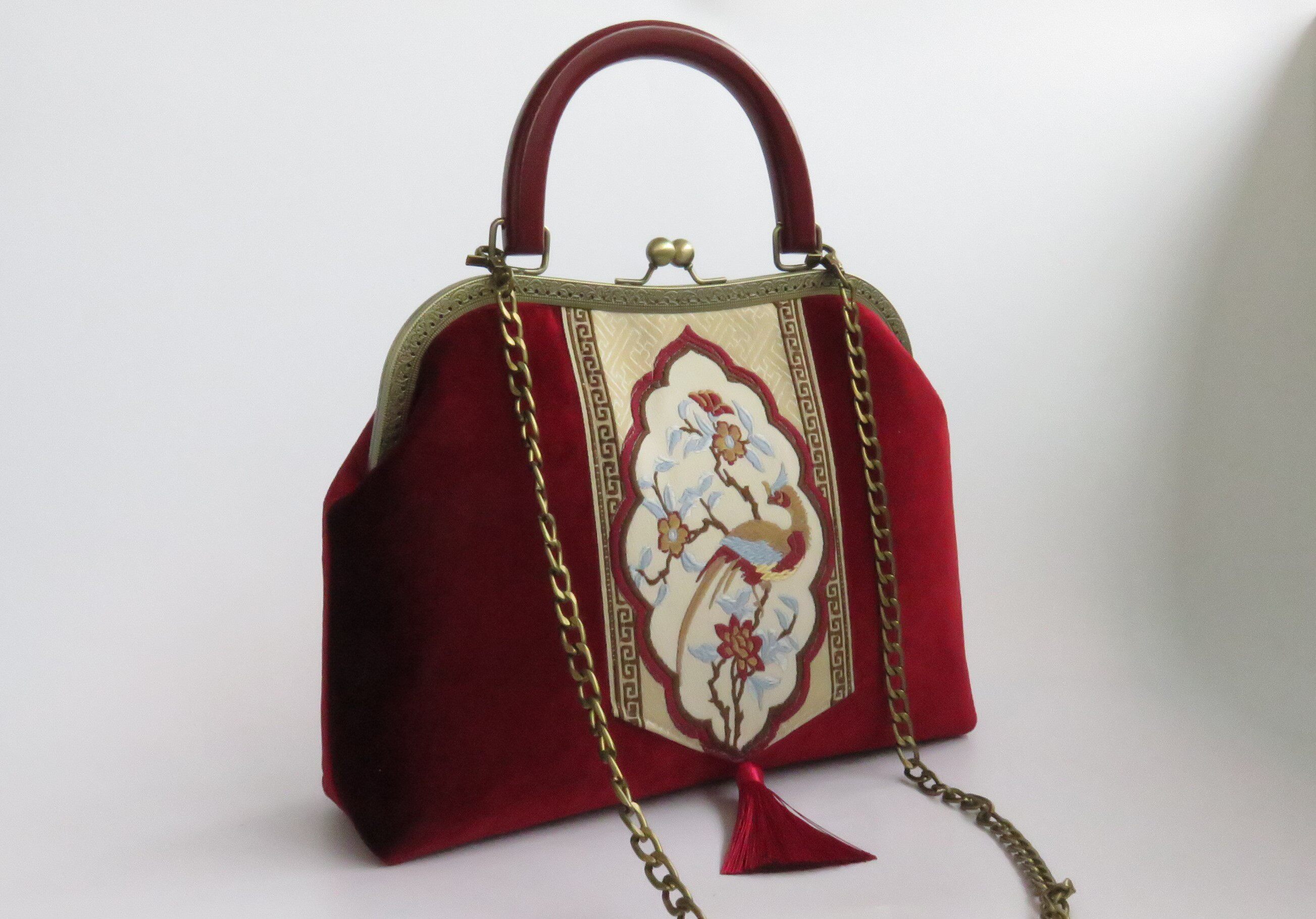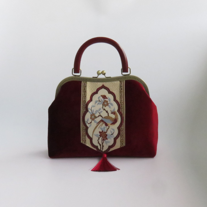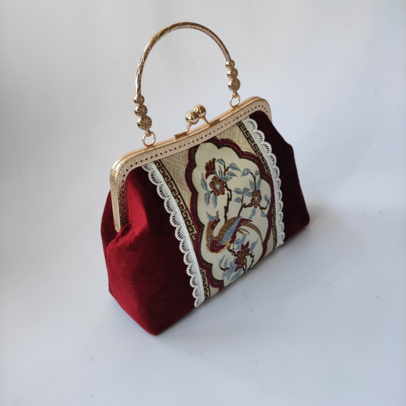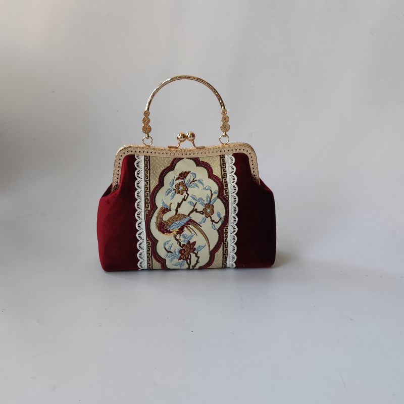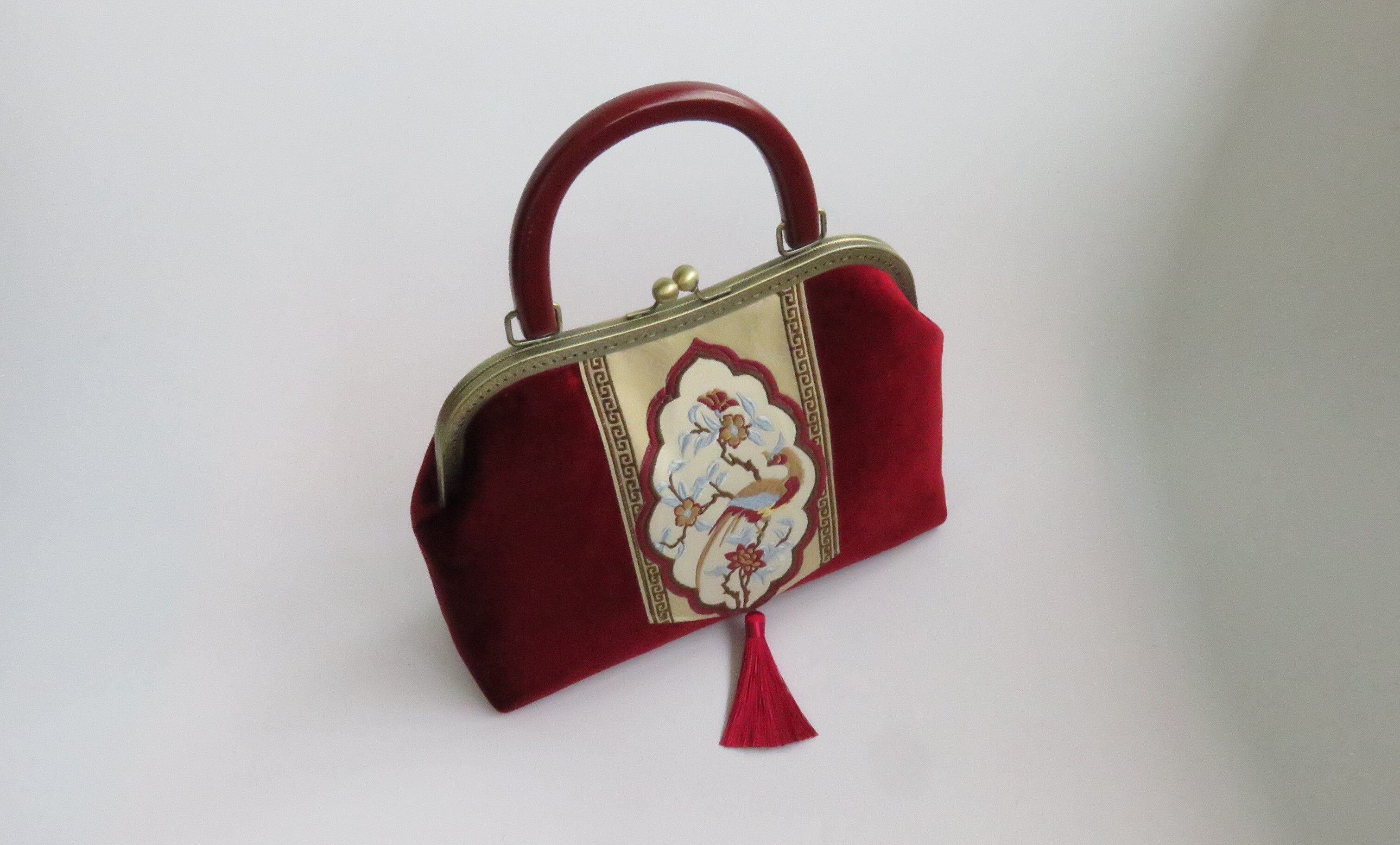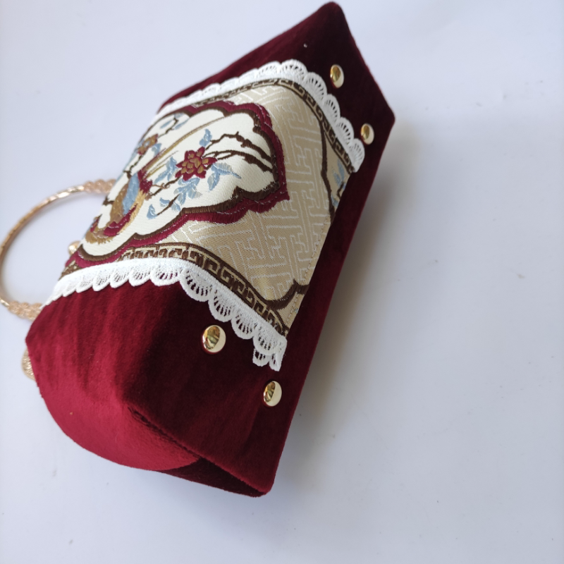 表布絲絨+刺繡工藝,尺寸是寬28厘米,高20厘米,厚度8厘米