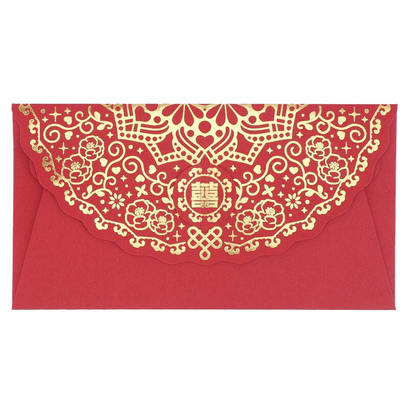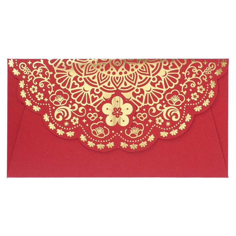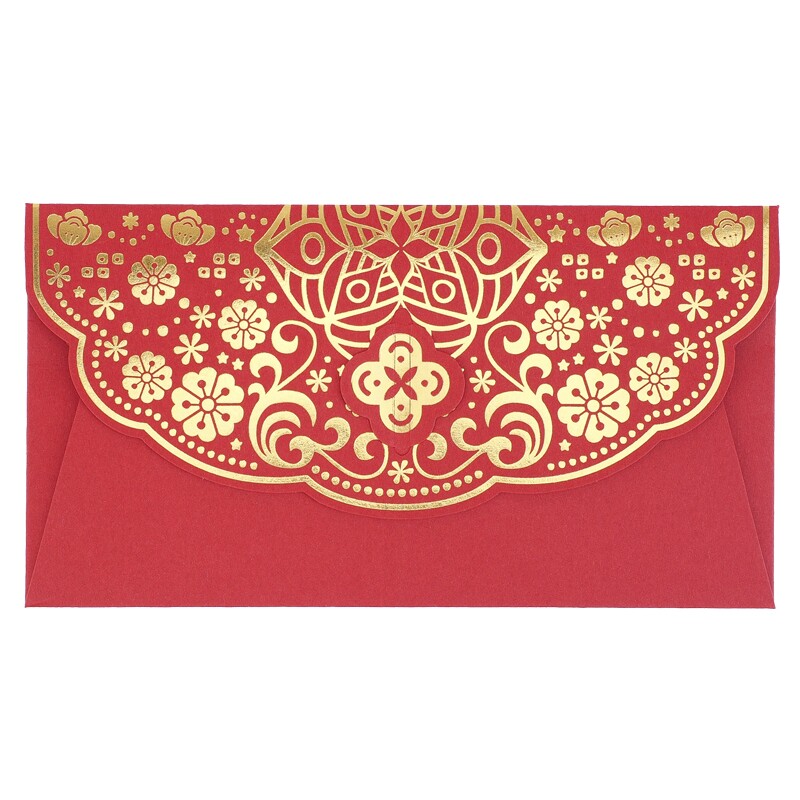 紅色信封配上燙金花紋更顯貴氣,