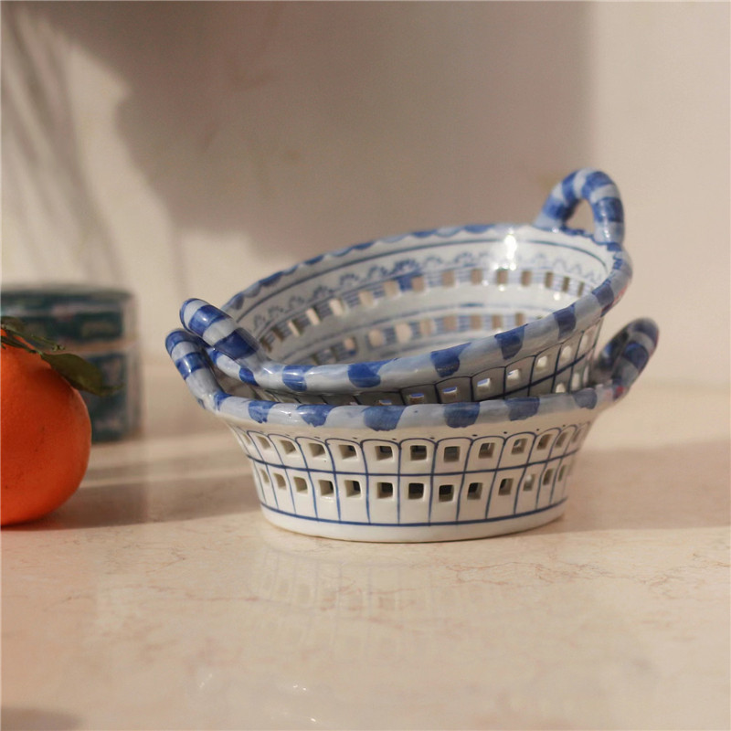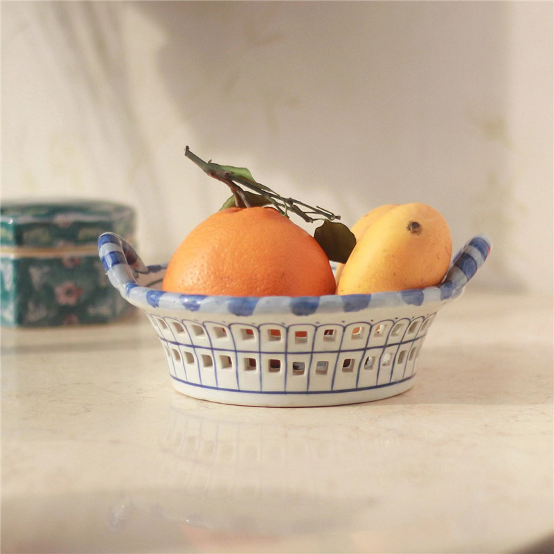 比較小的一個水果籃,照舊是淘到的老庫存,鏤空手繪釉下彩,鏤空的地方因為年代久遠會有些灰塵,收到可用刷子刷刷清洗
