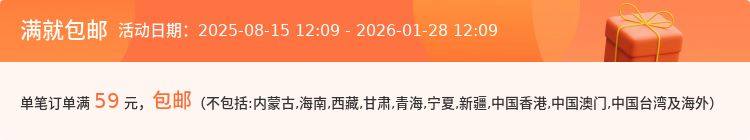 訂單達到免運條件後,運費將涵蓋關稅及5公斤以內包裹的基本運費。若包裹最終稱重超過5公斤,超重部分將依據集運倉運費計算公告(https://m.bcatlogistics.com/single?id=115)依照材積重量加收運費。客服人員將在收到加收運費通知後與您聯繫。若於收到收費通知D+5日內無法聯繫上您或未得到回覆,訂單將直接取消,包裹將進行逆物流退回廠商。此外,消費者需承擔大陸端的往返運費(約新台幣200至2000元不等)。若未支付逆物流費用,將無法進行退款作業。建議您在下單前先與商家客服確認運費預估金額。 - 「全球購折價券及運費折抵券,為消費者免費領取,視為附條件使用的優惠券,僅限訂單成功完成後生效。若因斷貨、缺貨等不可控因素導致訂單取消,折價券/運費折抵券因交易未成立而失效,恕不返還。消費者領取及使用本折價券,即視為同意相關活動規則及限制。」
