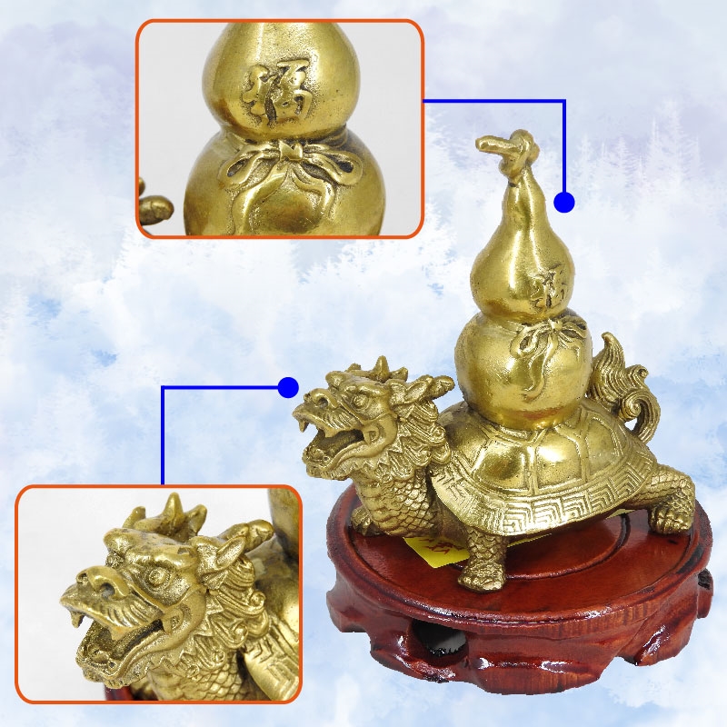【吉祥開運坊】【鎮宅銅葫銅龍龜-大(附木座) 旺財/增人緣/鎮宅化煞】開光加持/擇日安置