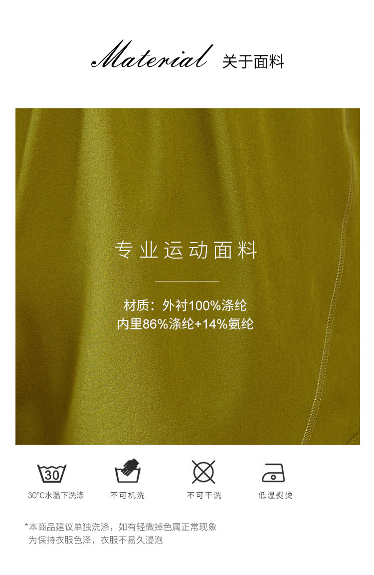 面料:外層100%聚酯纖維 內層:聚酯+氨綸