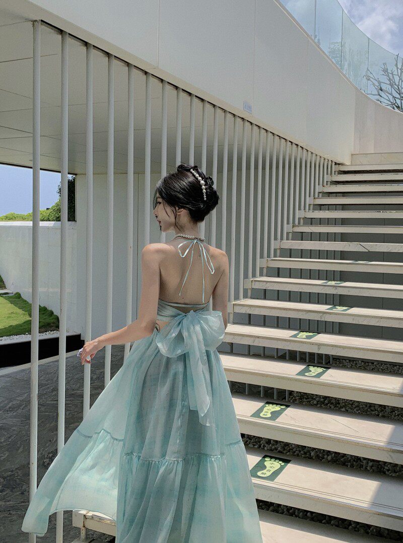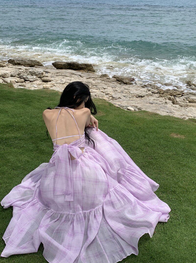 格子裙擺浸潤金色的陽光,賦予這件裙子夏日的熱情