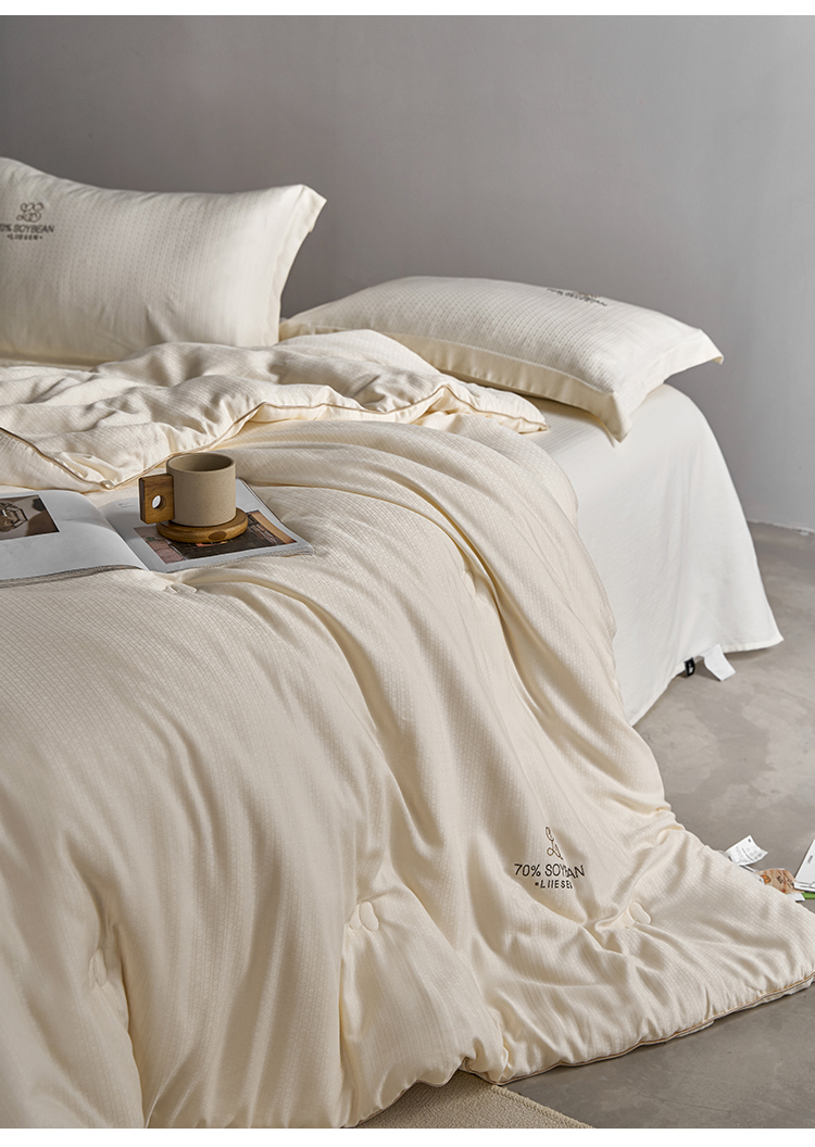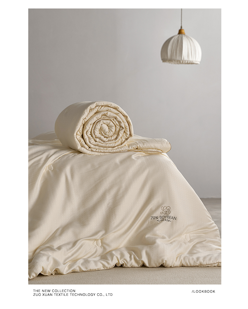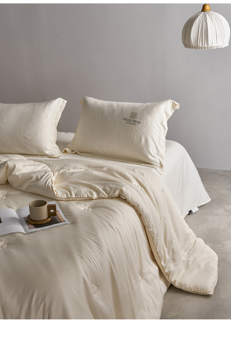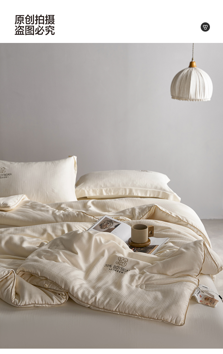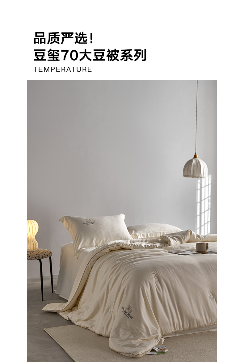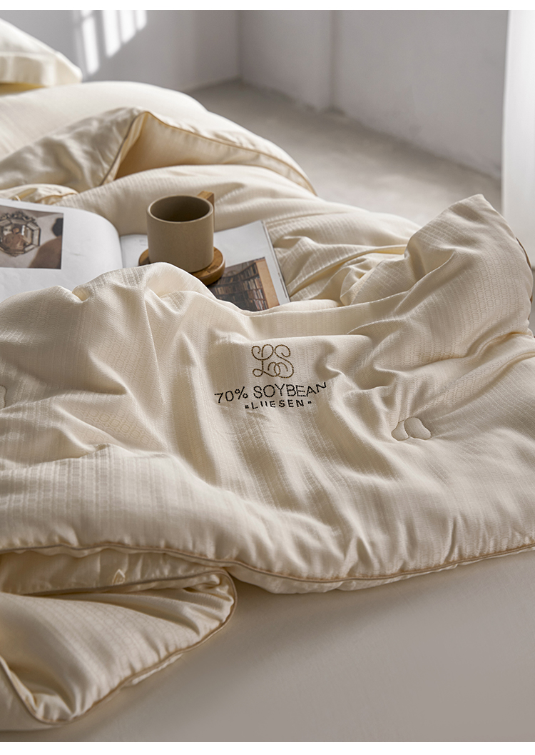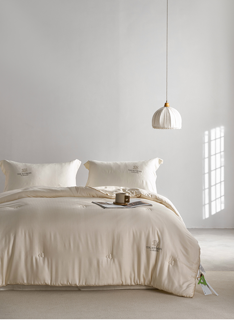 品牌:蝦米的故事 品名:豆璽70大豆被 面料:80%再生纖維素纖維+20%聚酯纖維 填充:70%改性蛋白聚乙烯醇(李官奇大豆纖維) + 30%聚酯纖維
