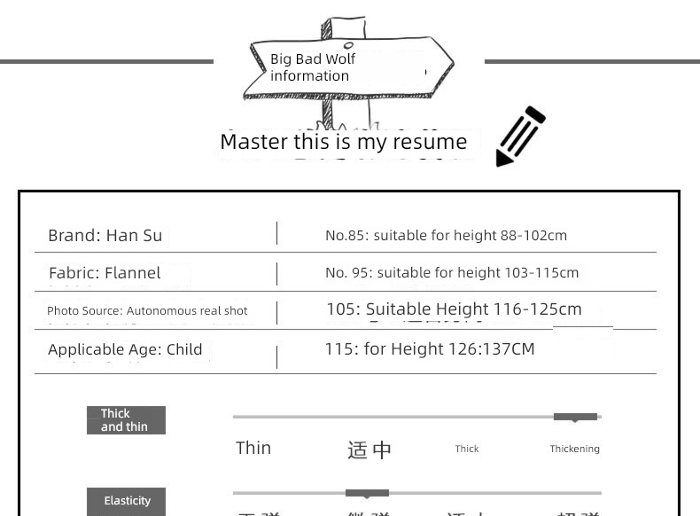 (兒童款兩種碼標隨機發貨,碼標有兩種85,95。。。125對應100,110。。。140,其對應身高都是一樣的,參考碼號后面括號里的建議身高就可以了)
