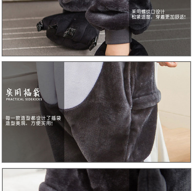 細密柔軟的珊瑚絨材質,不掉毛不掉色,保暖透氣舒適,款款采用卡通動物原型,可做家居服睡衣,也可做表演服,一衣多穿,不浪費。