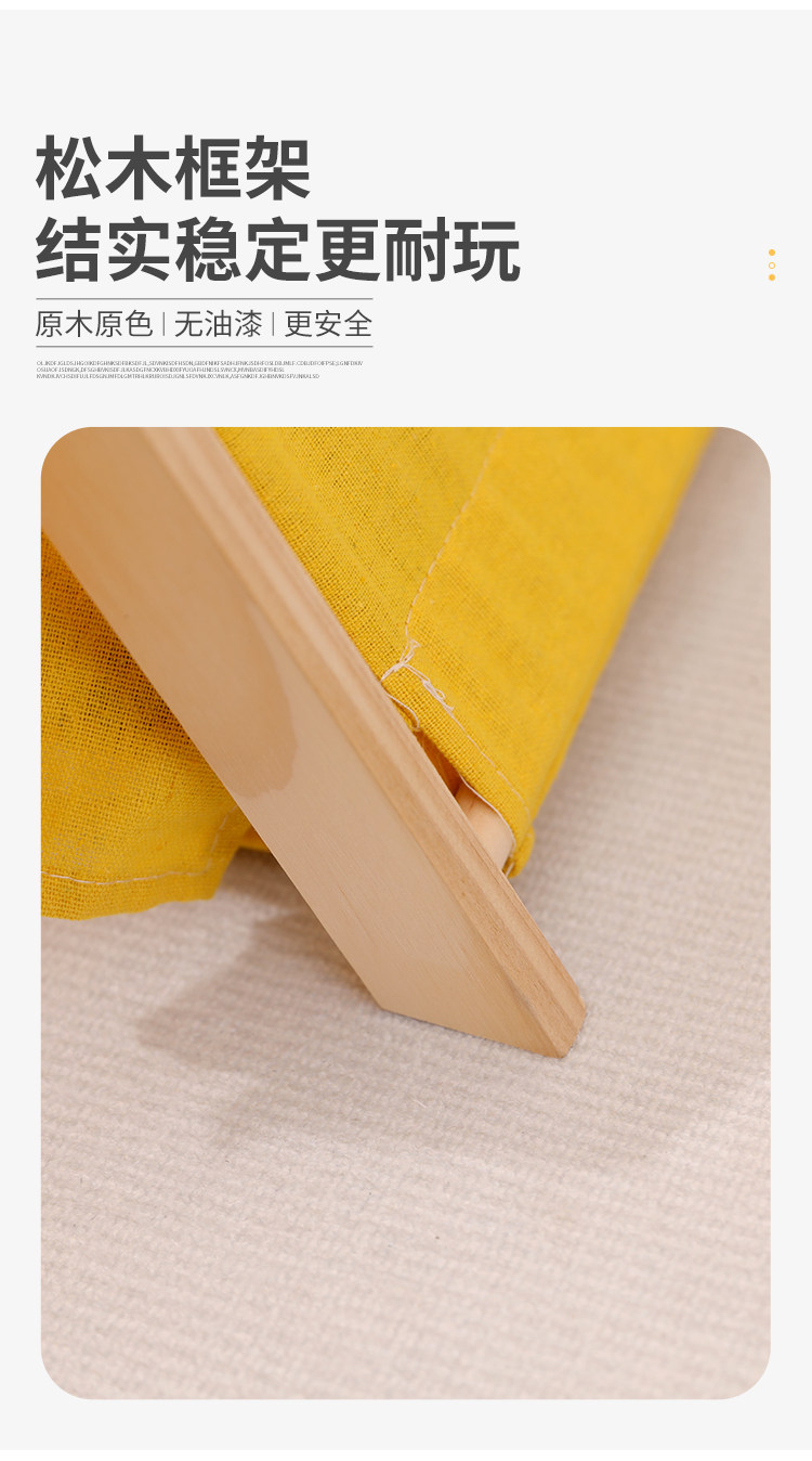 內里使用實木支架,外面采用棉麻布料 ,結實穩固 無異味 搭建簡單 易清理 移動方便 不占地 溫馨提示:含墊的訂單發貨時墊子顏色隨機發貨的 介意者慎拍