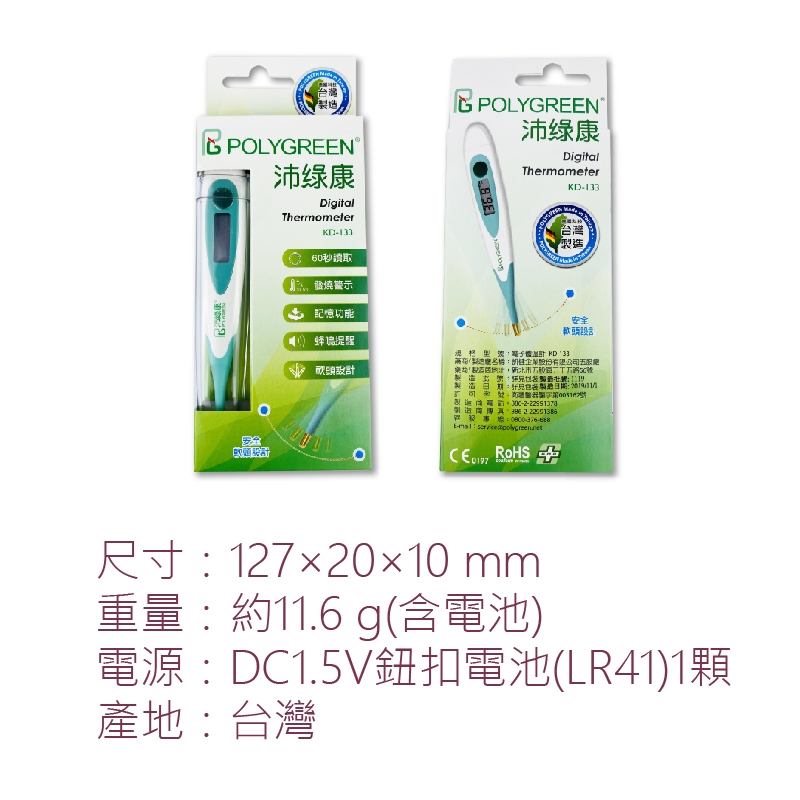 醫療器材許可證所載品名:“沛綠康”電子體溫計