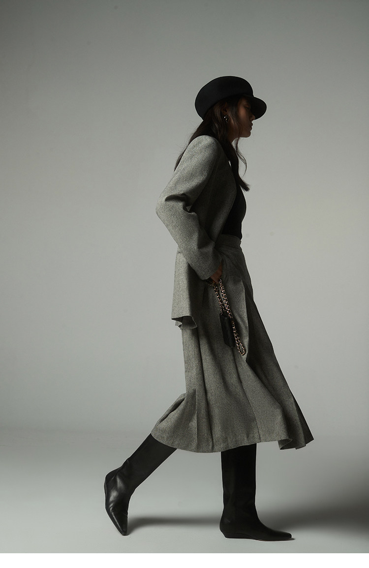 配合率性不失溫柔的顯腿長的不對稱半裙