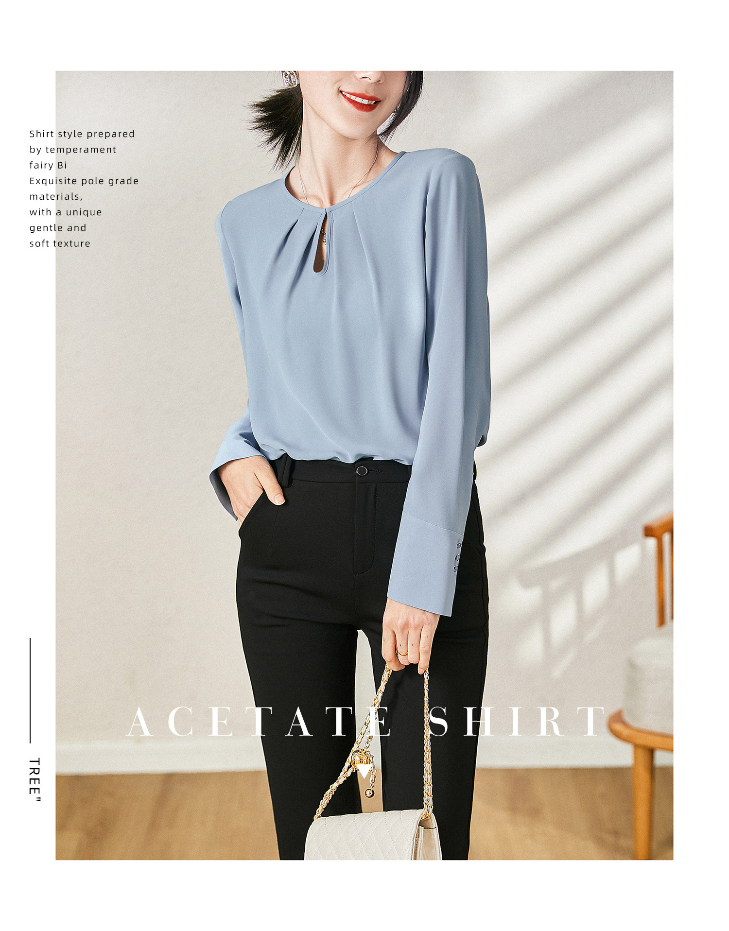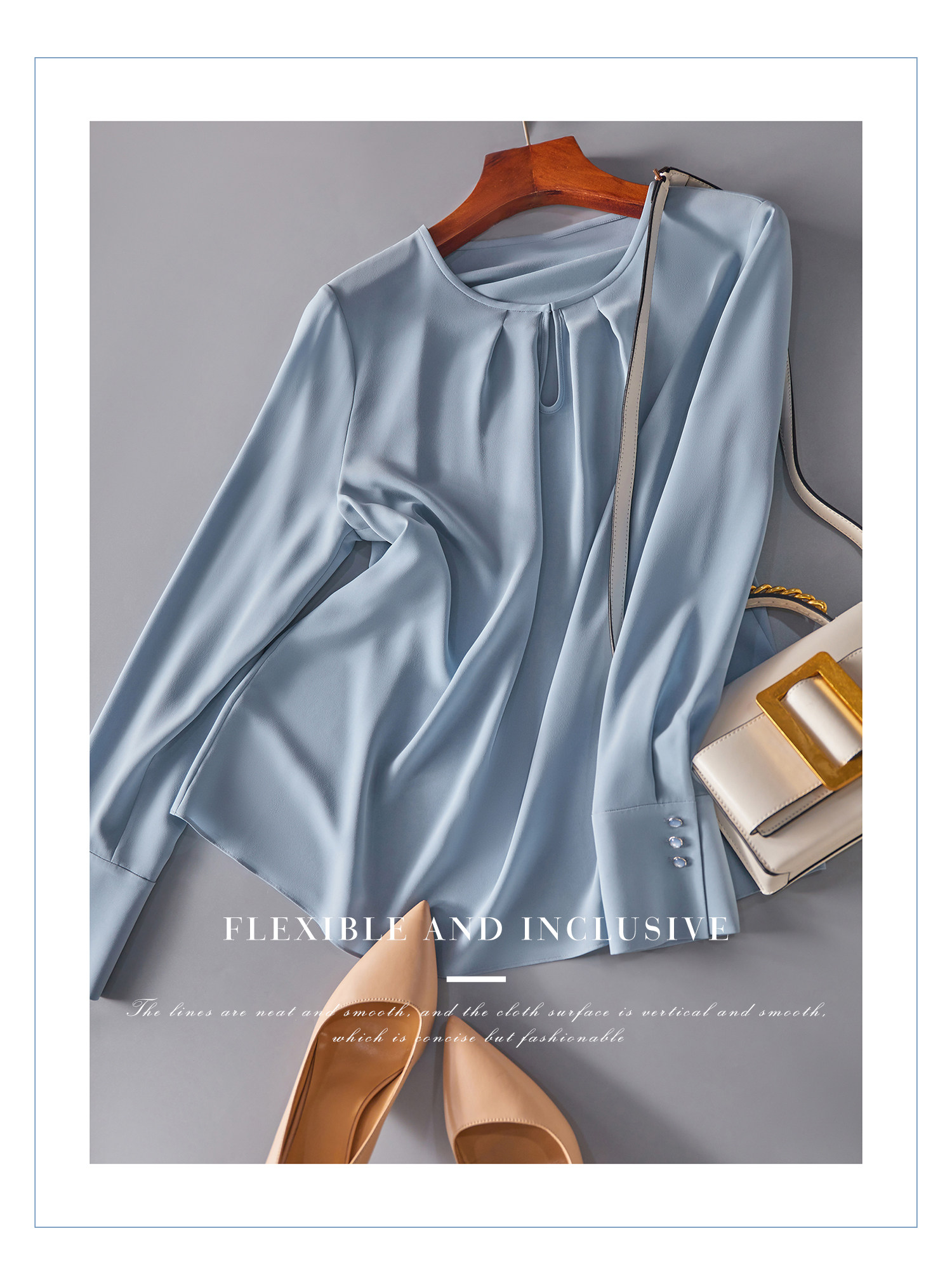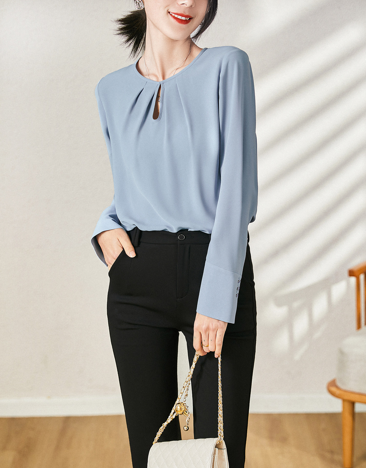 又沒有基礎款襯衫線條的硬朗,適合都市女性穿著。