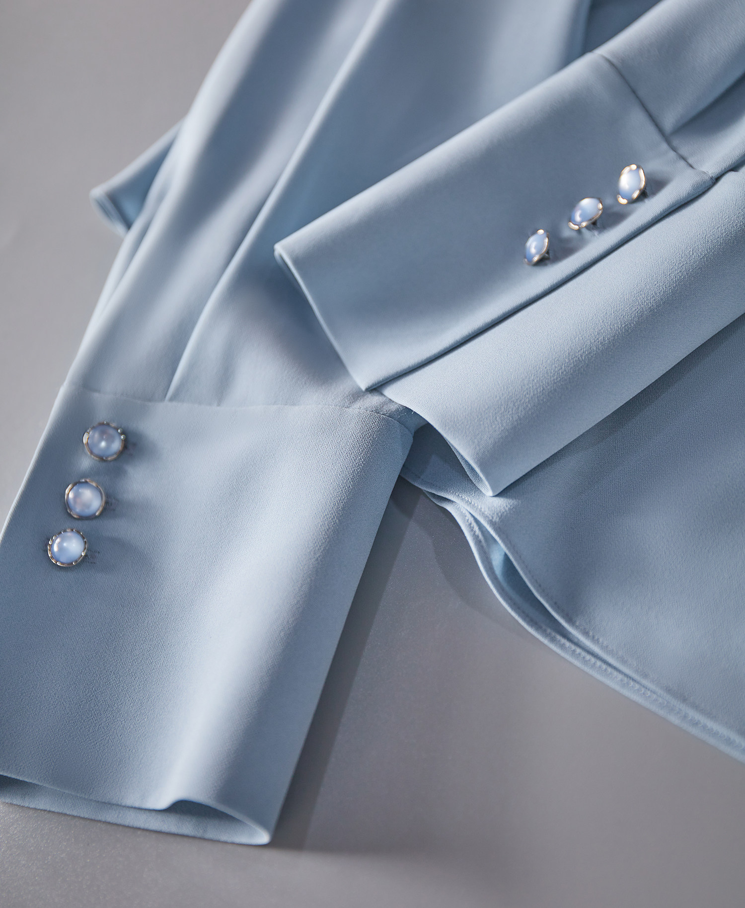 點綴在三醋酸面料上,又能凸出面料的肌理感與光澤感