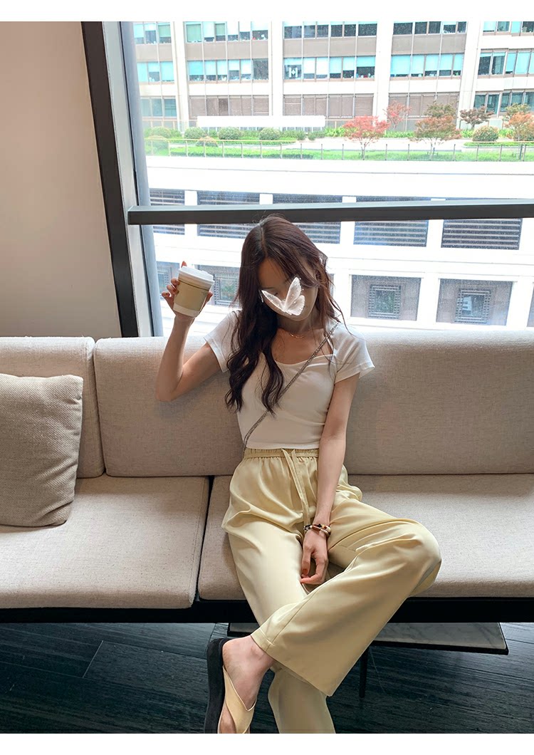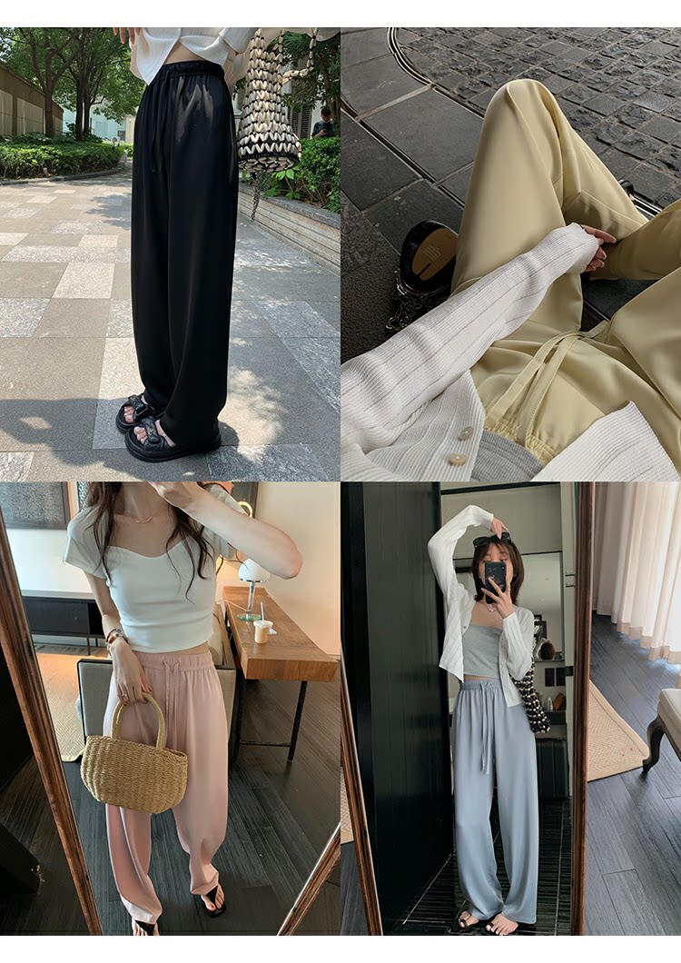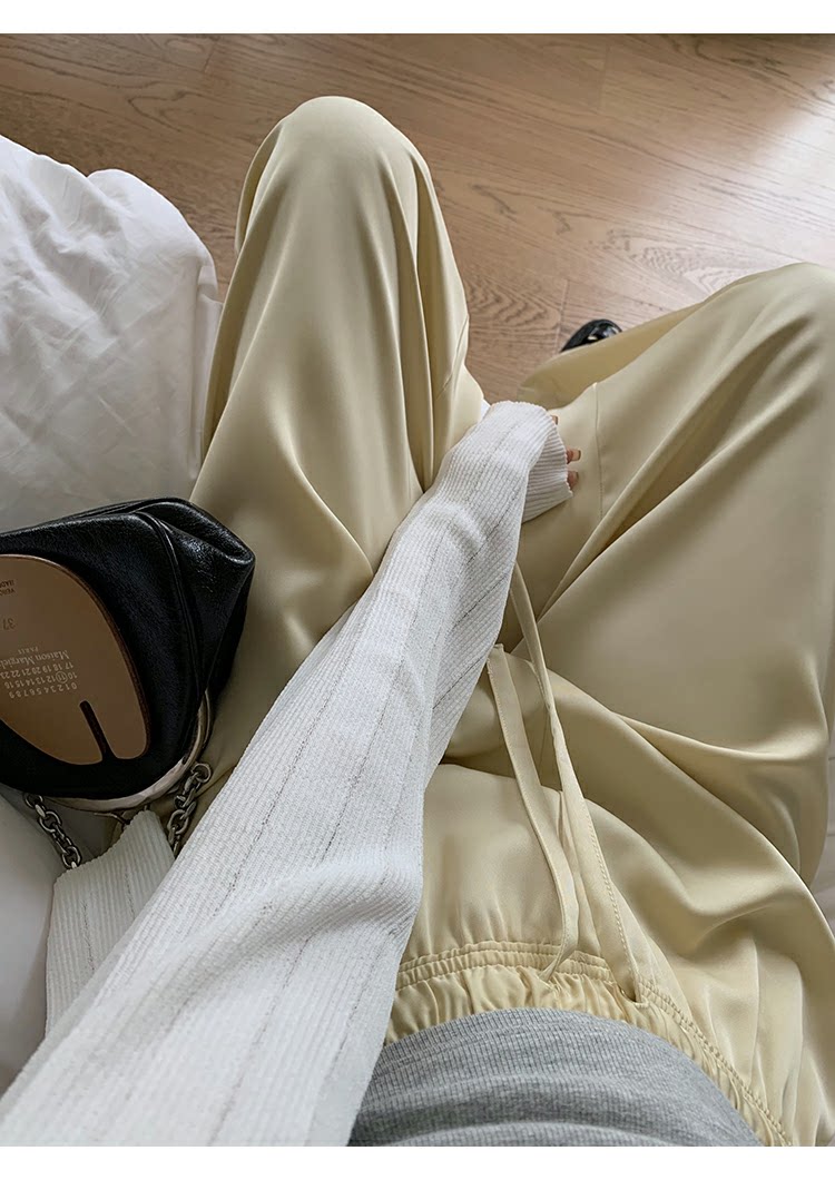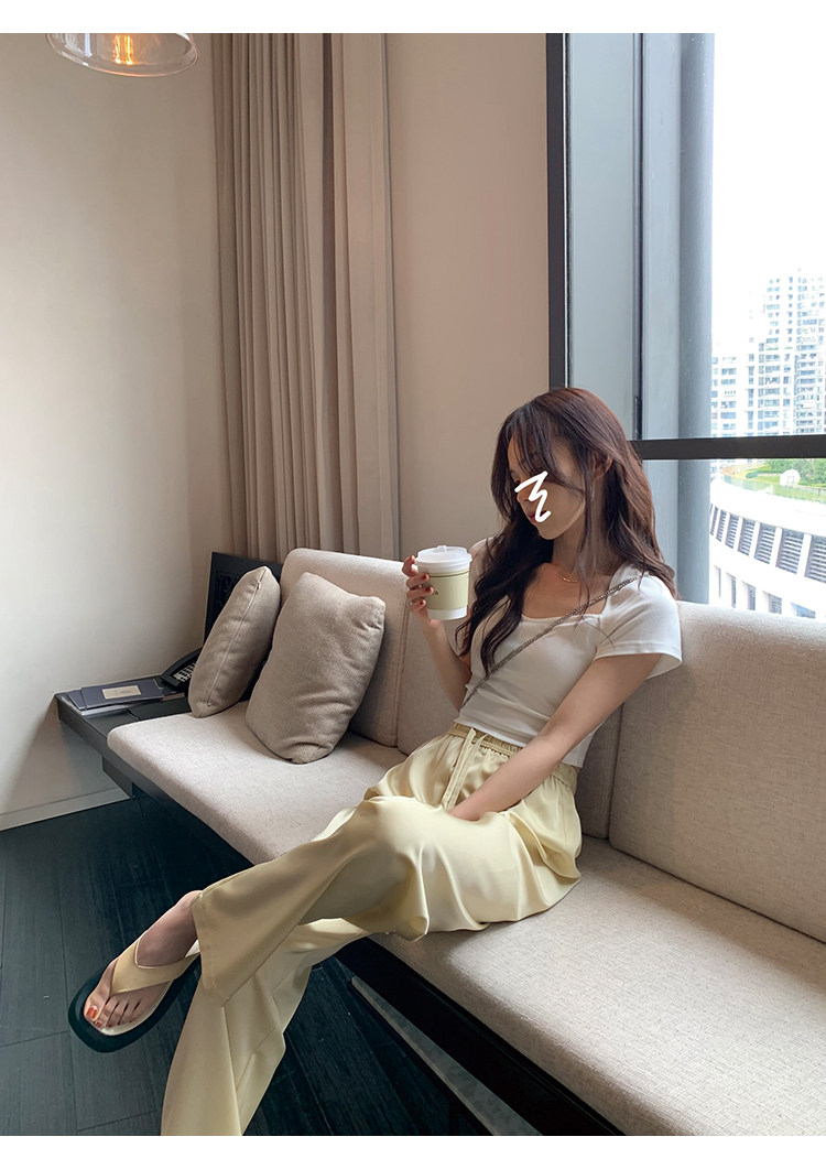 這個緞面冰涼褲真的是我的夢中情褲了 從三月份開始就在對比各種緞面面料 這款是大海撈針選出來質感最好的 它是霧面的啞光的緞面,上身不會有常規緞面這么明顯的光感 只有很低調隱隱的光澤度,高級感超強 腰部全松緊,除了一段收省讓腰型更好看以外 側面是沒有側縫的,有種一體成型的高級感,并且很舒服 包括腰頭的處理我也很愛 是我心里這些年蕞優秀的一款緞面褲