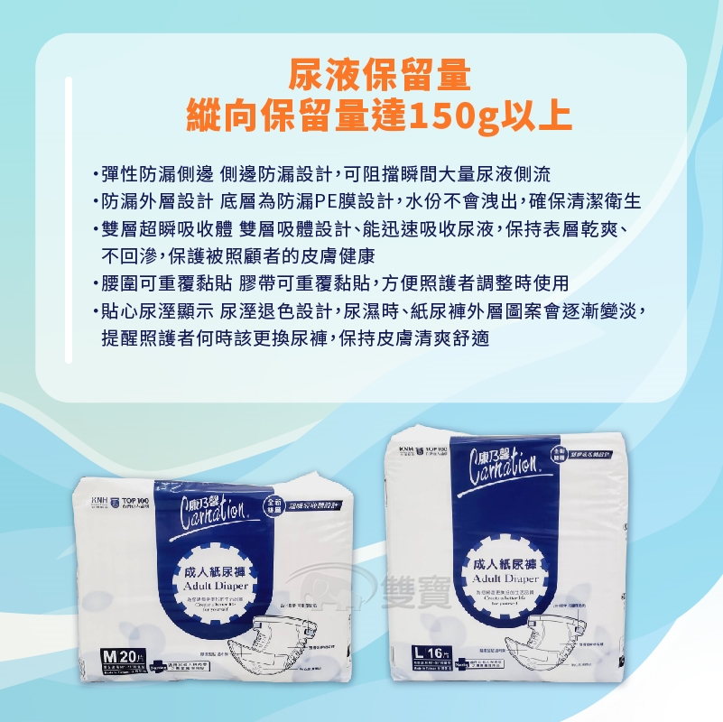 •雙層超瞬吸收體 雙層吸體設計、能迅速吸收尿液,保持表層乾爽、不回滲,保護被照顧者的皮膚健康