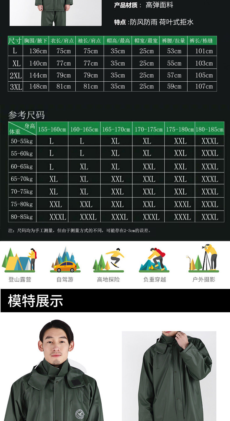 雨衣尺碼本身就是做大的,不用特意買大,安裝尺碼表購買就可