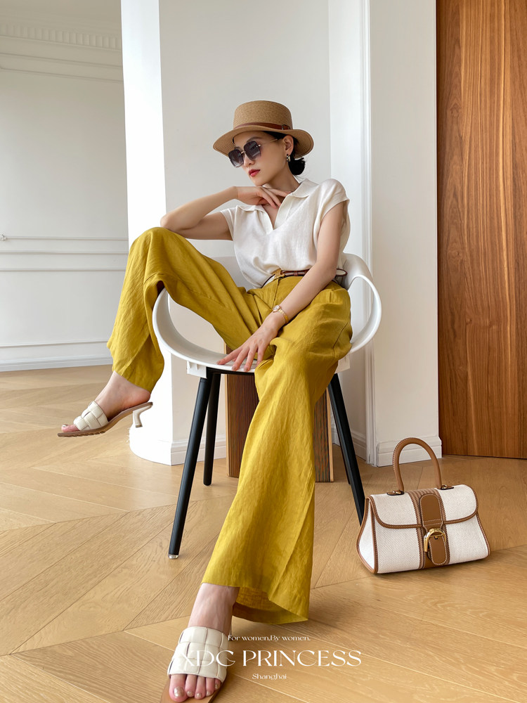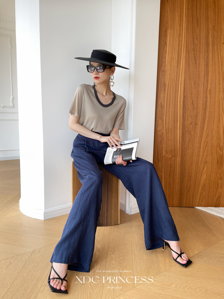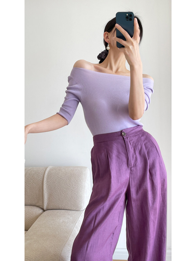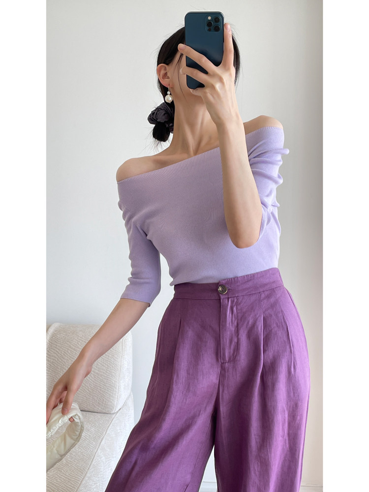 各種漂亮的小衫也很適合搭配亞麻闊腿褲,