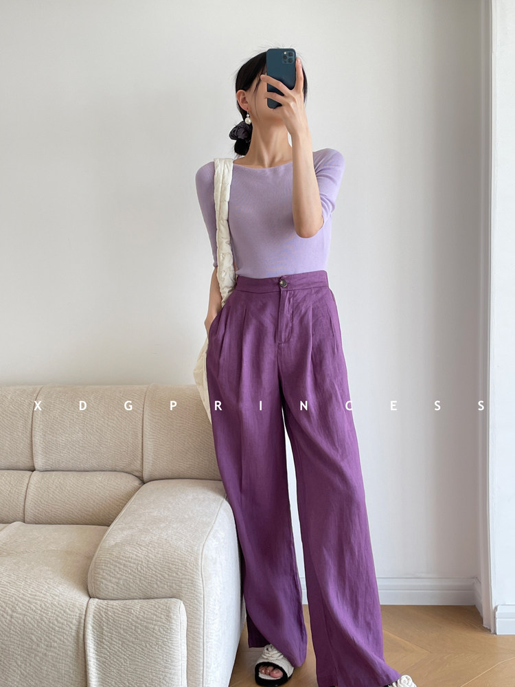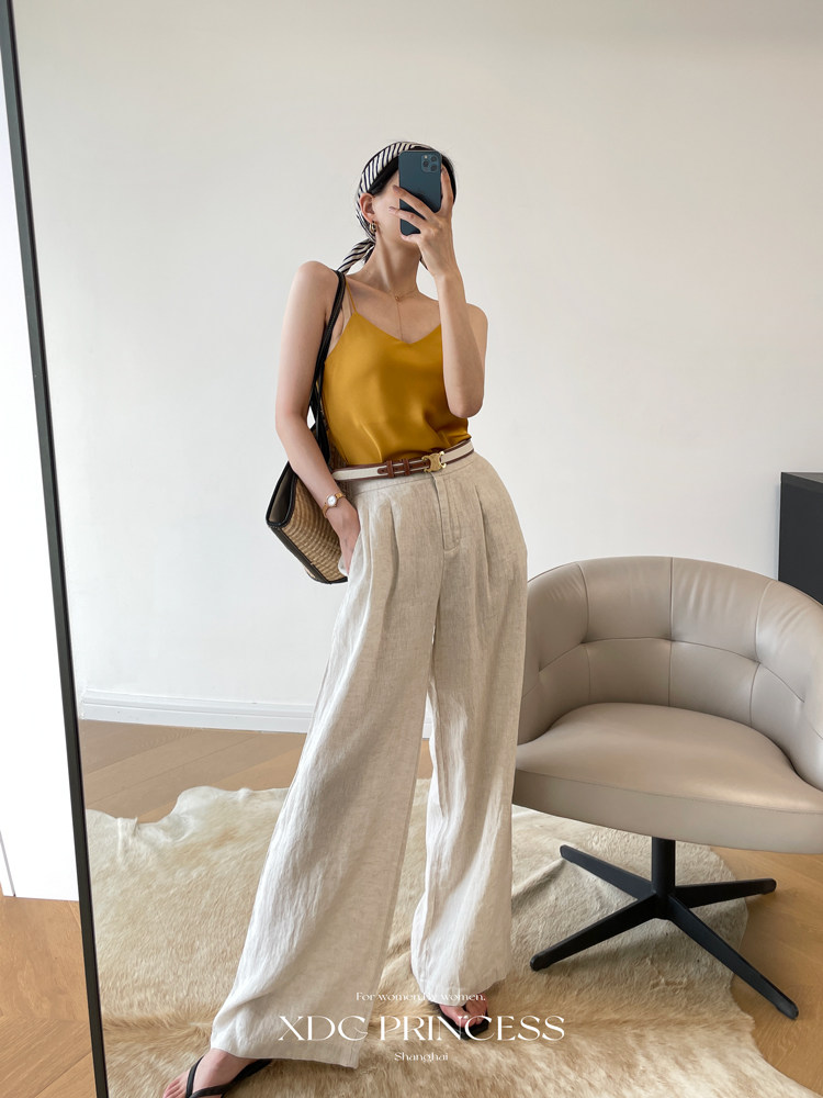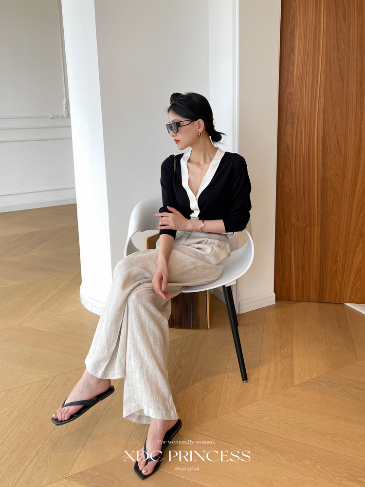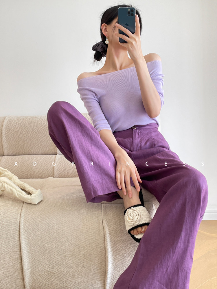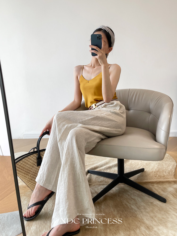 各種漂亮的小衫也很適合搭配亞麻闊腿褲,
