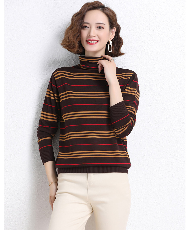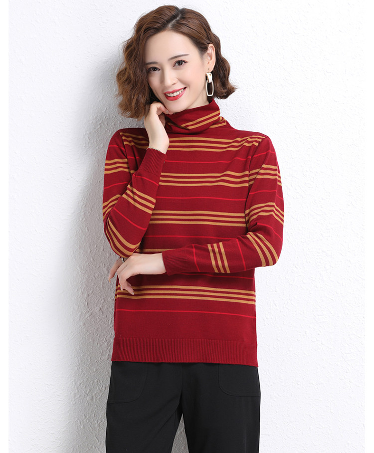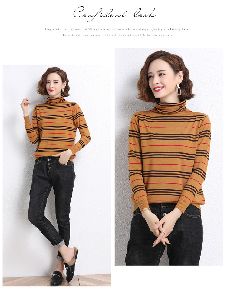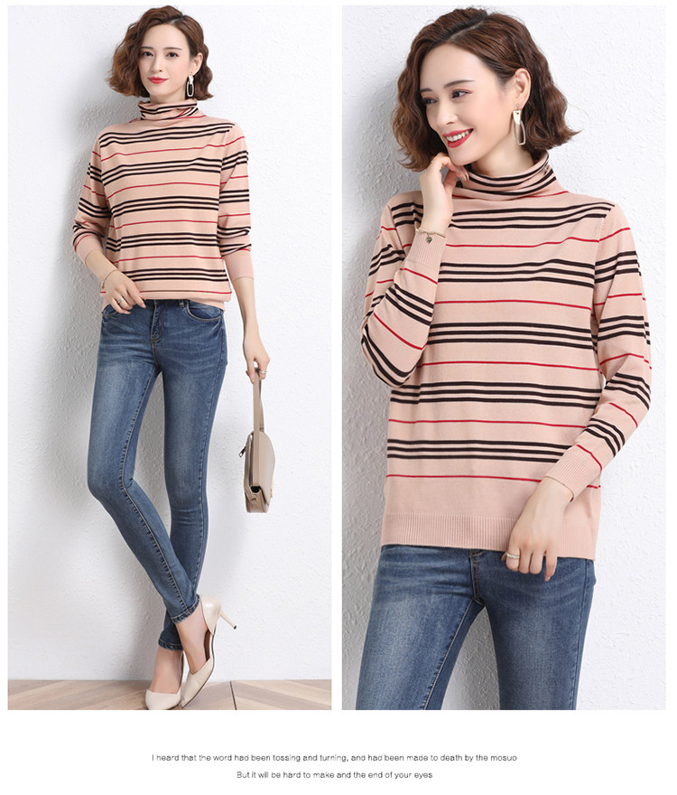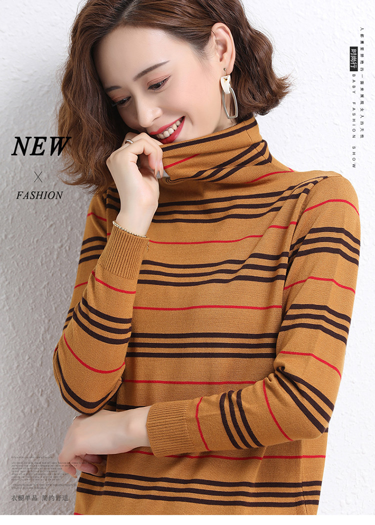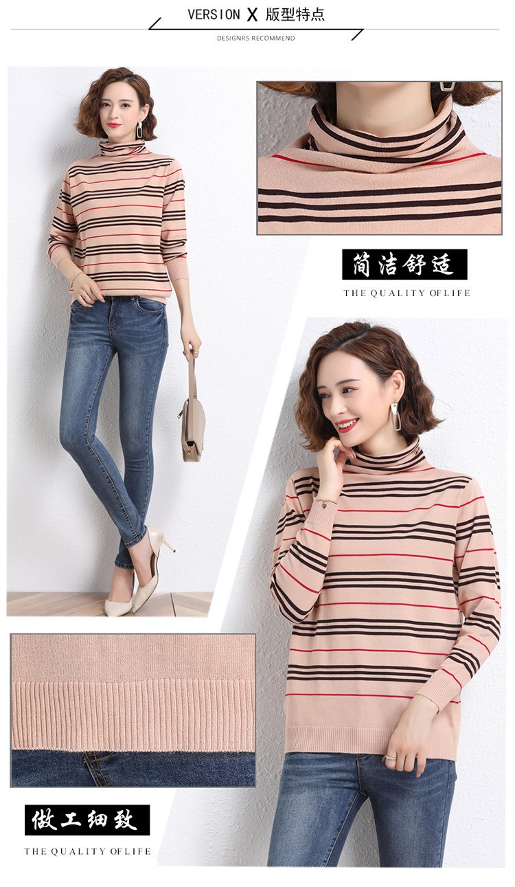 恒源祥羊毛衫女春裝洋氣短款橫條紋針織打底衫百搭堆堆領毛衣