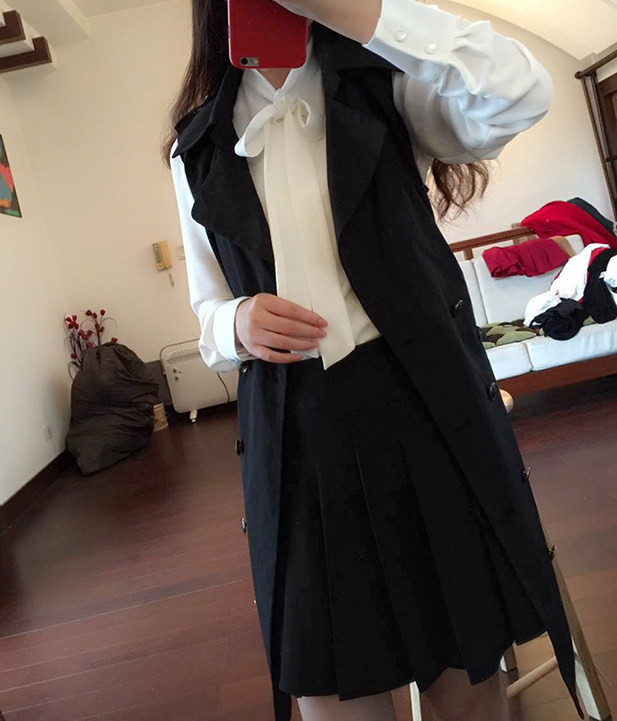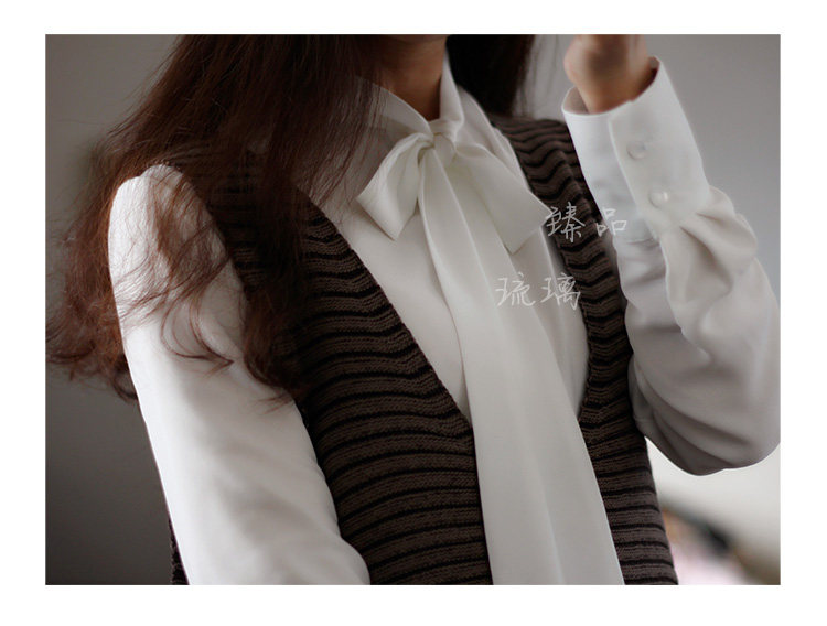發現 會搭配 會巧用飄帶的親 很厲害哦 把第一顆扣子不扣上 然后 帶子打的低點 領子就低了 露點脖子 也很好看的 可以參考下面買家秀的妹紙 打的真的很不錯 聰明的菇娘 點贊哦