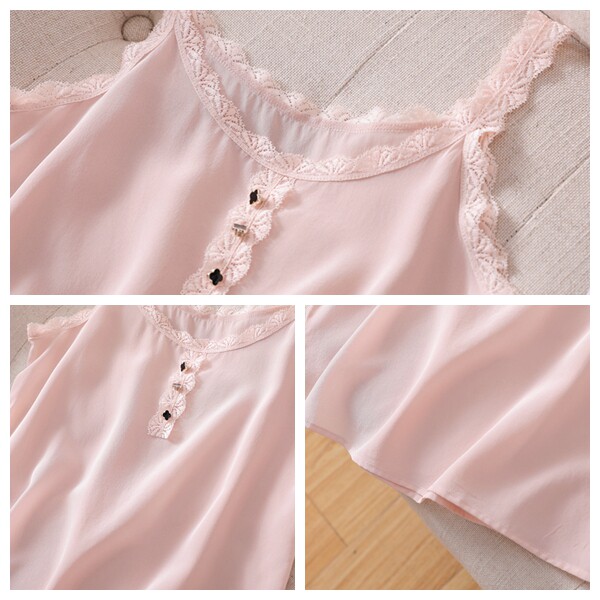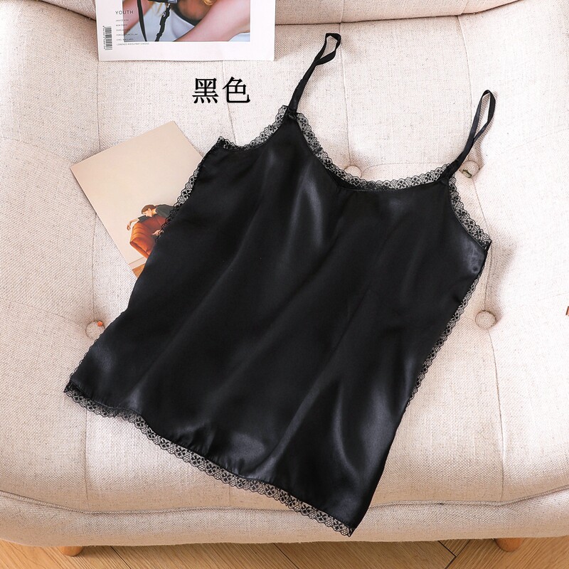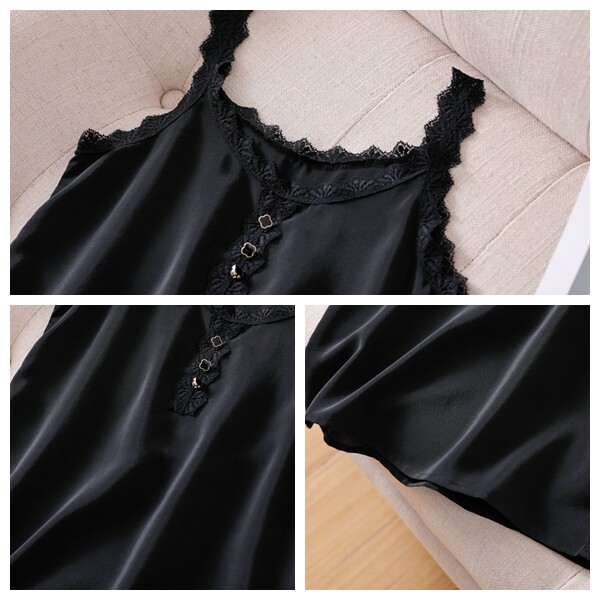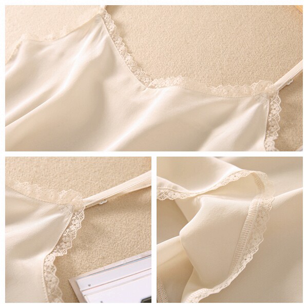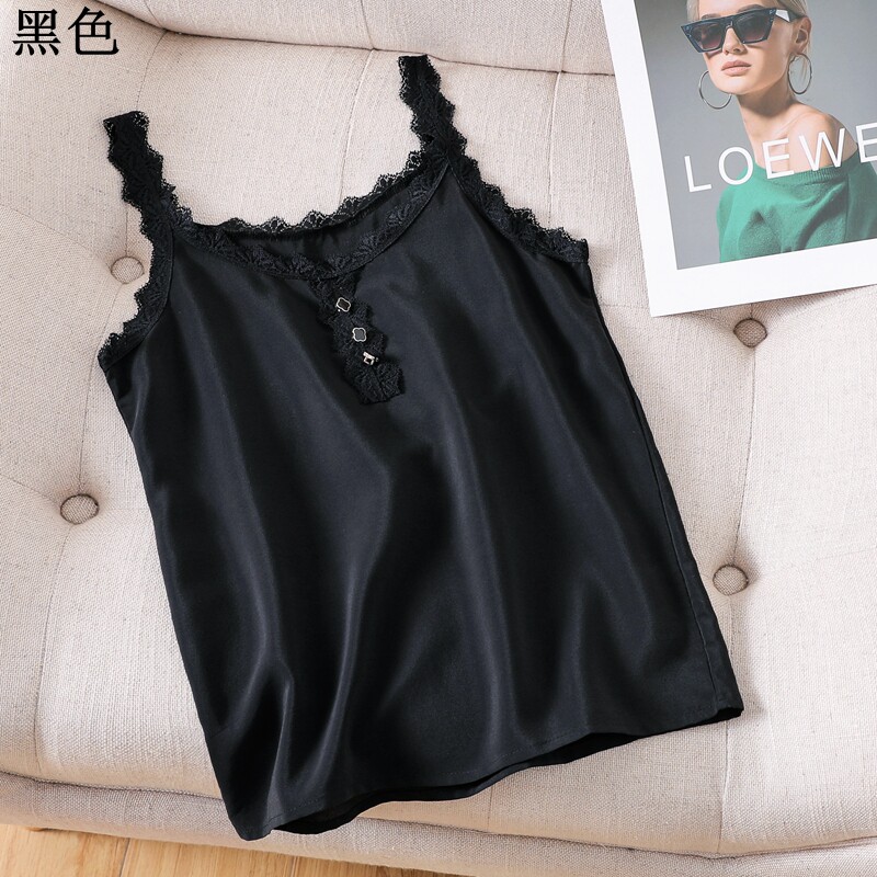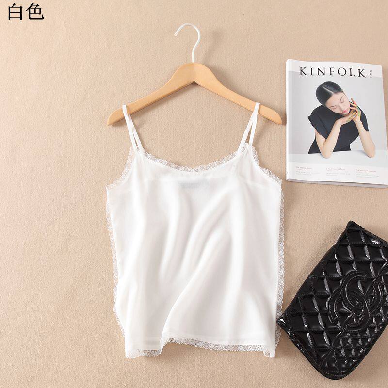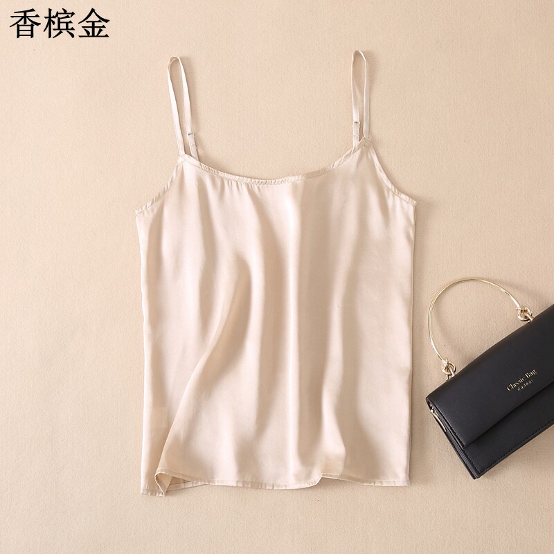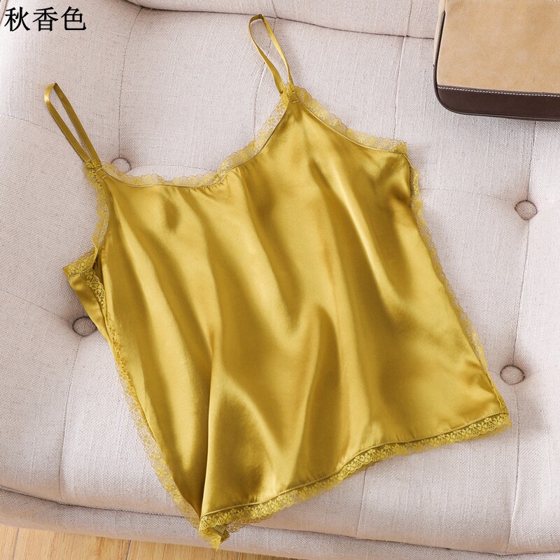 面料真絲雙縐,表面有肌膚般均勻紋理,泛淡淡光澤,圓領,光邊,簡潔的一款打底小吊帶,百搭,肩帶可調節,穿真絲對皮膚好