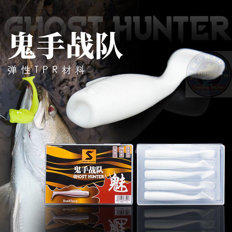 鬼手戰隊的 魅系列浮水T尾 這種材料的餌是隊長小黑哥多年來一直委托朋友從馬來西亞買成品餌自己用的必殺利器 ,因為最近鬼手戰隊將推出一系列鉤子 軟蟲配件, 這次求得TPR材料的配方和國內廠合作 魅TPR材料浮水T尾,80mm,針對海釣開發的T尾,對象魚:盲曹、海鱸、紅鲉、石斑、紅古等海魚,魅T尾柔軟耐用,柔軟而騷動,平收或跳底時提高魚咬口,注意:TPR材料需獨立存放,