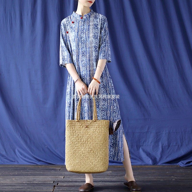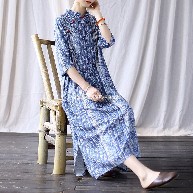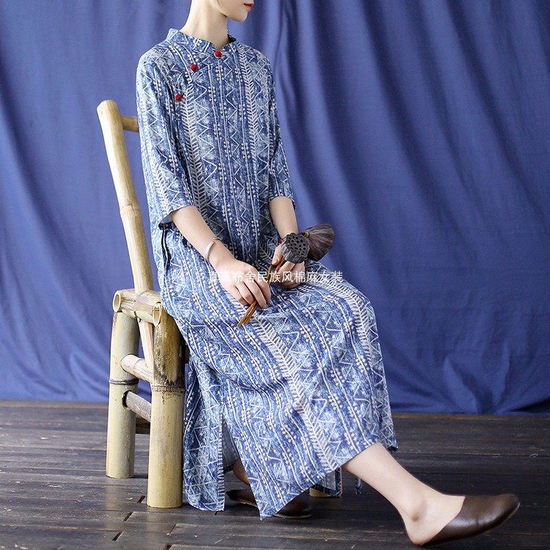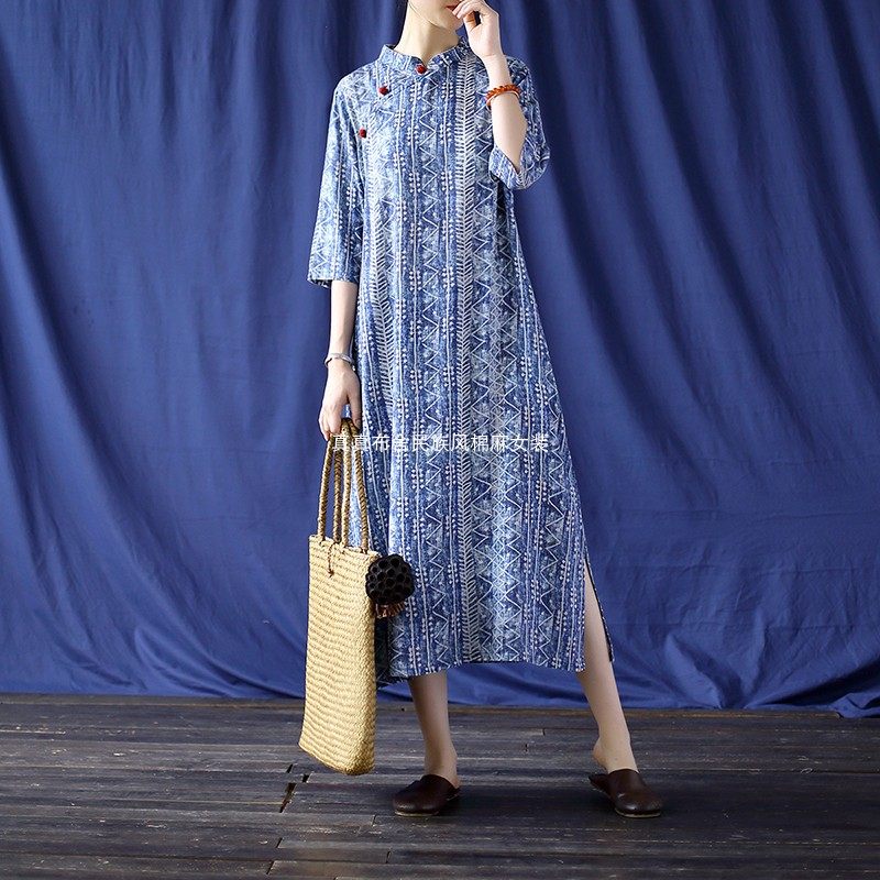 【+關于面料】面料:棉麻數碼印花,全工藝做舊洗水處理+手工葡萄扣【+關于尺碼】均碼:肩寬40cm、衣長115cm、胸圍104cm,袖長35cm,手動測量會有2-4cm誤差。【+關于衣服】棉麻數碼印花改良旗袍,做了紅色手工葡萄扣。七分袖,秋季的袖長。成衣砂洗處理過,一般不會再有大的變化和掉色。可以放心購買。由于拍攝和顯示器的原因,實物會比圖片稍暗些,介意者慎拍。【+關于洗滌】首次洗可以用鹽水浸泡一會兒固色。不可漂白、長時間浸泡。陰涼處懸掛晾干,切勿高溫水燙。建議手洗!【+關于模特】 模特涼涼:身高165、96