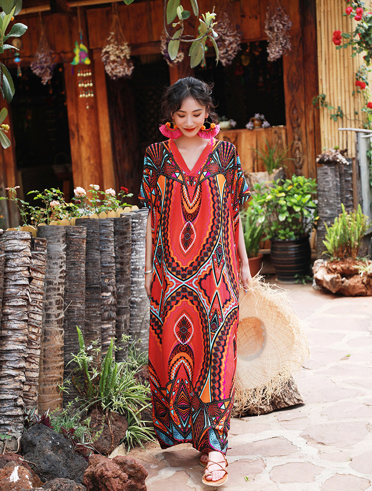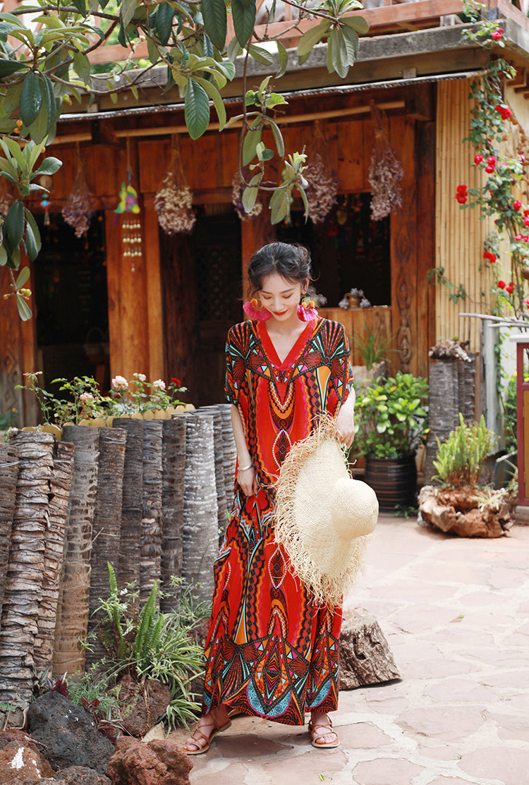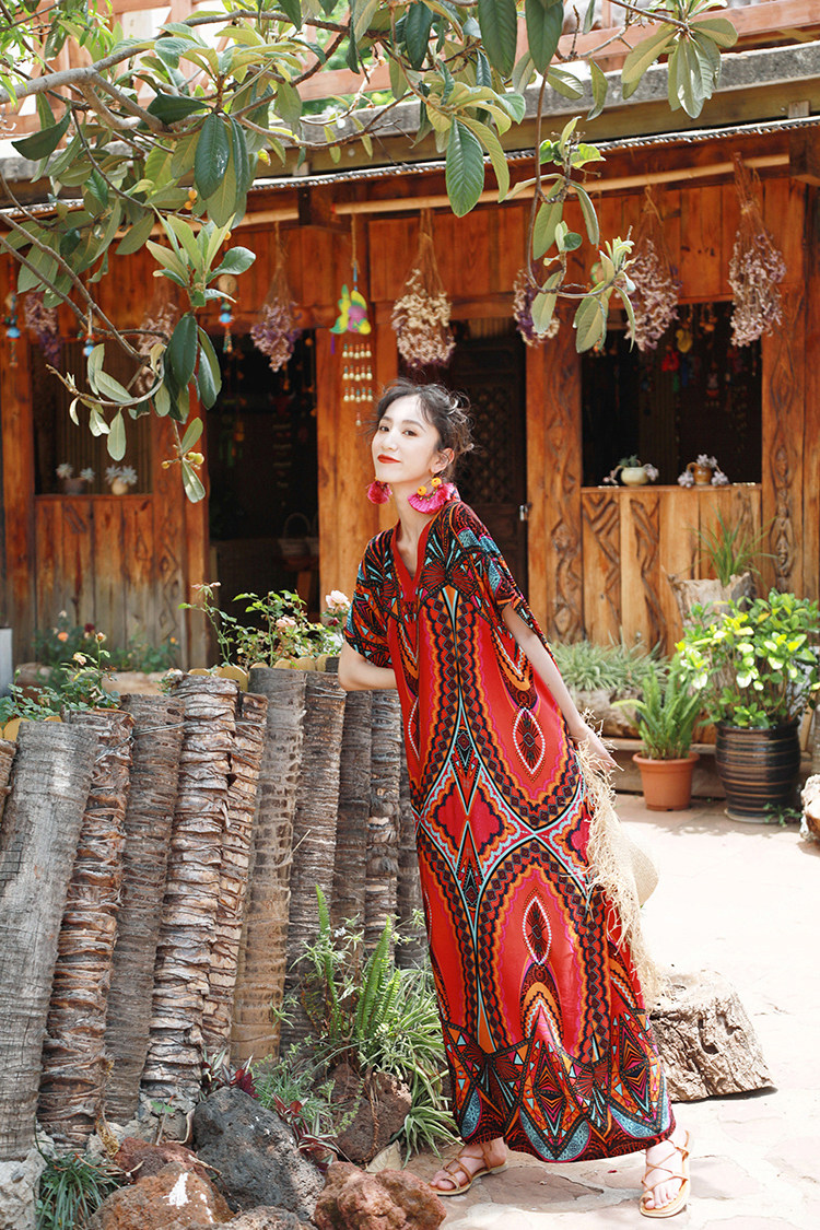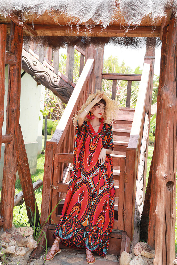 盛夏異域風情綿綢大袍子連衣裙