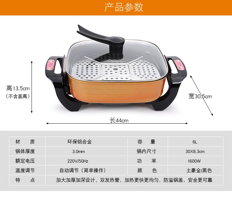 星箭廚房電器又添新成員啦!一枚源于韓國的帥鍋--- 新款富貴黃韓式多功能電熱鍋!一鍋多用,無煙不粘,一鍋頂十鍋!有炒、煮、烤、煎、炸、燉、涮、爆米花等多功能!真正的一鍋多用。超實用!可PK奧碩的品質,超低的價格,買到就是賺到!親們,還猶豫什么?