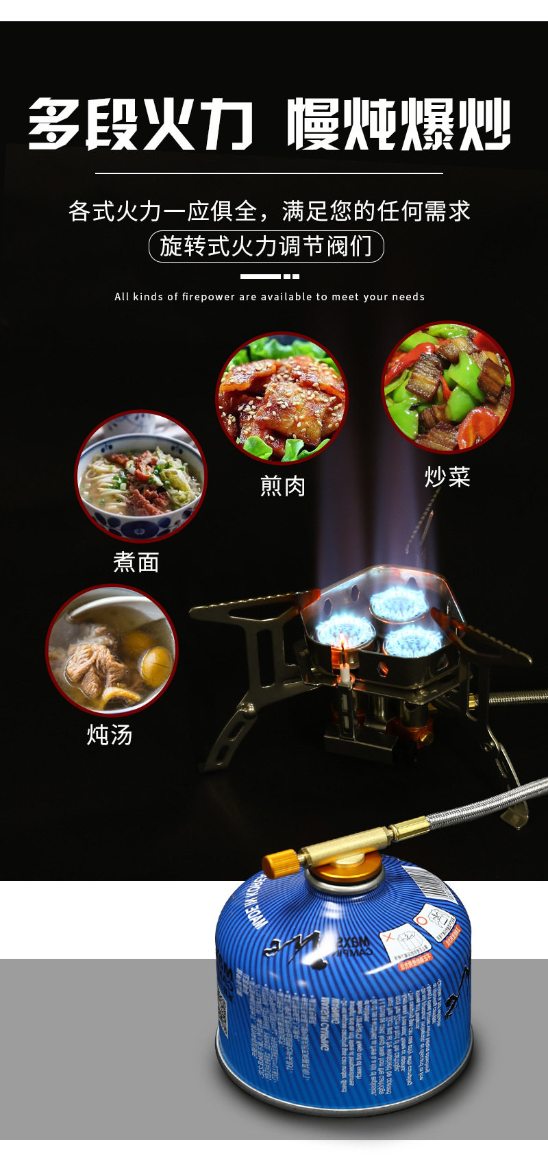 產 品 名 :新款防風三頭爐(已升級為二代爐頭,燃燒更充分)