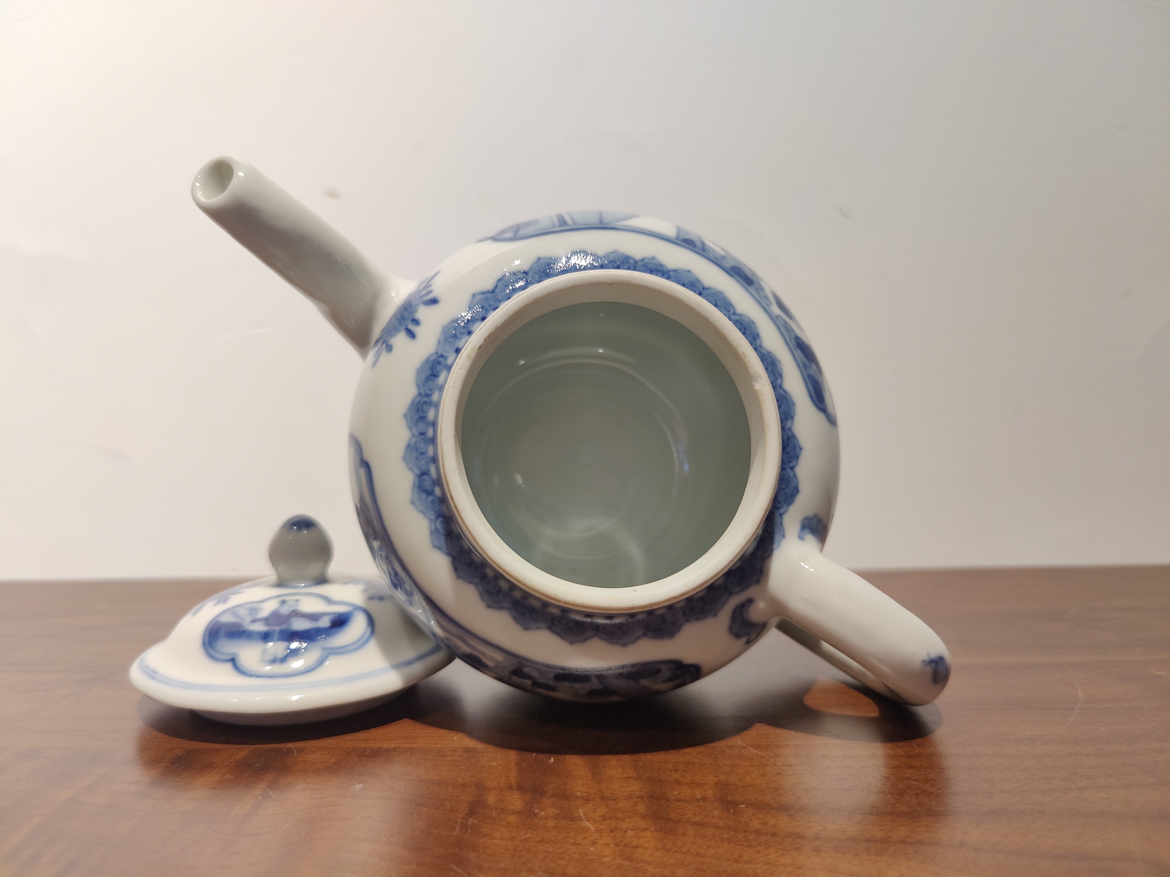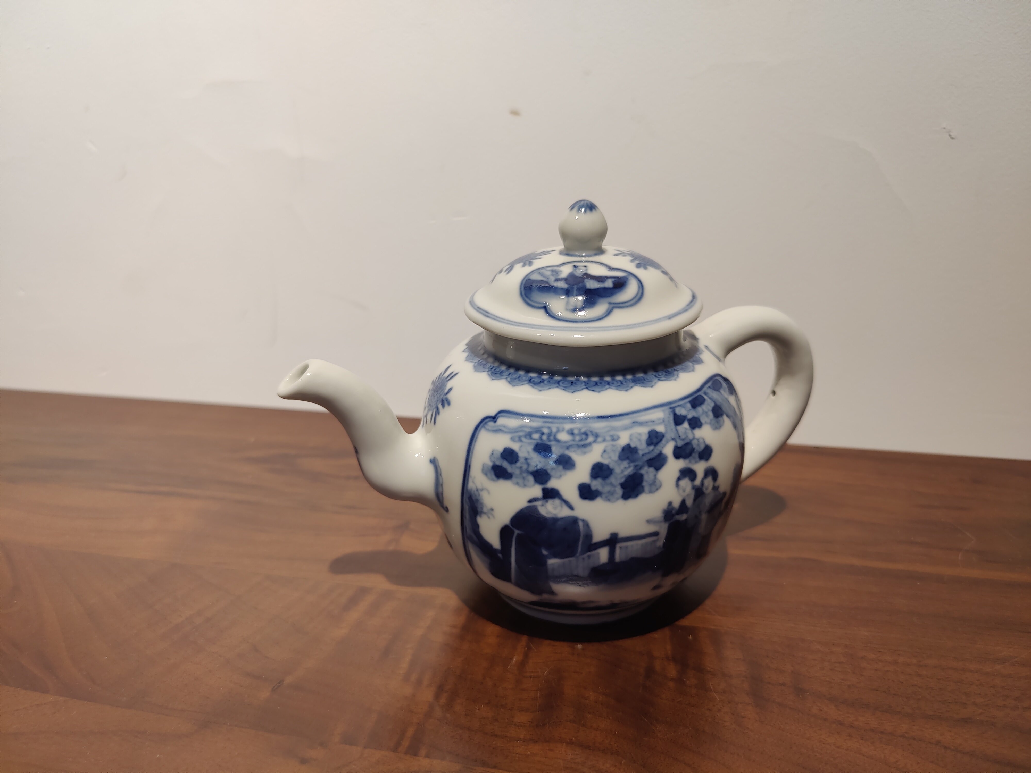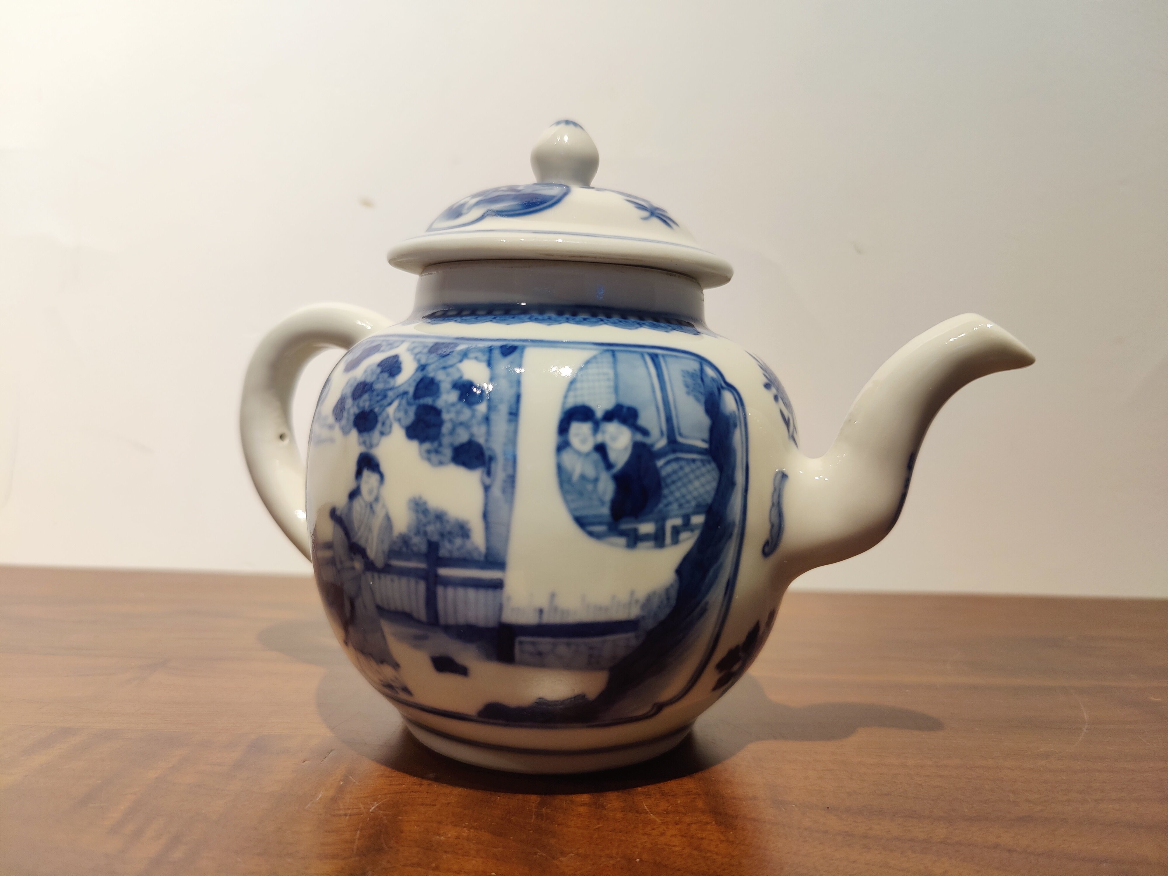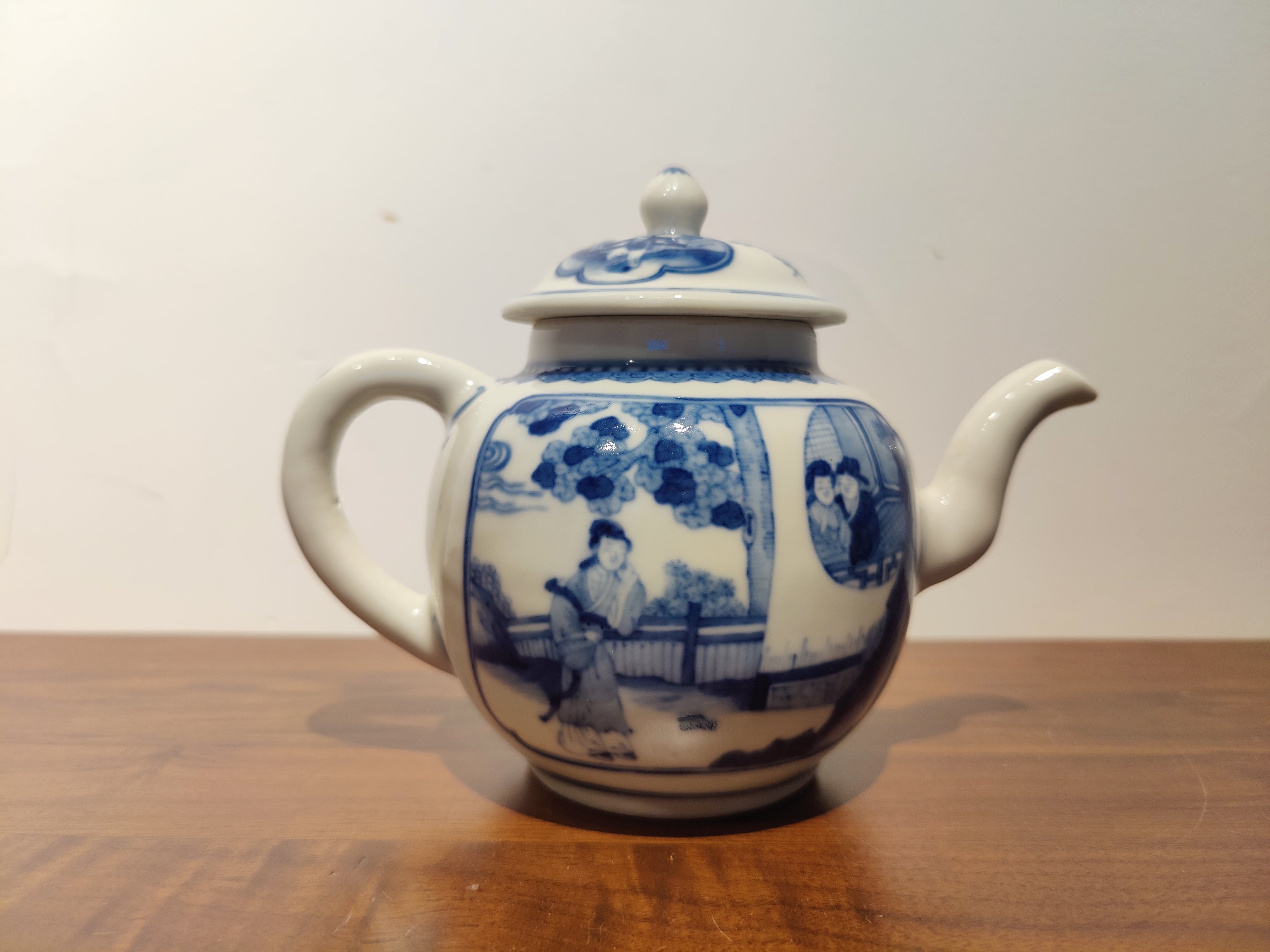 古器物清乾隆時期茶壺手繪青花人物圖