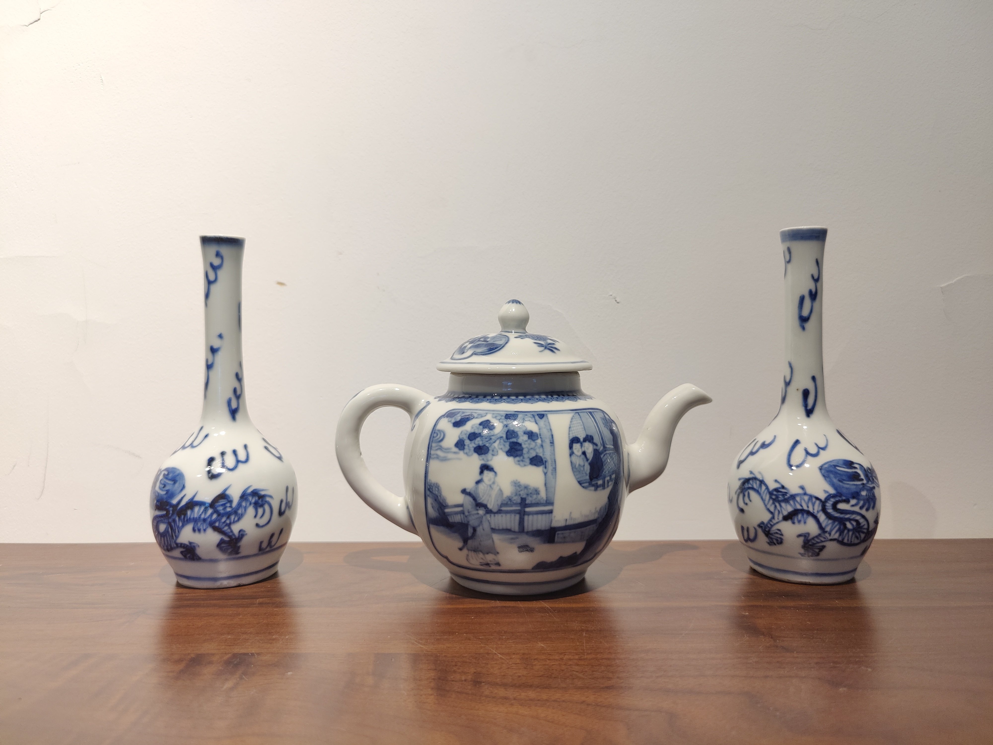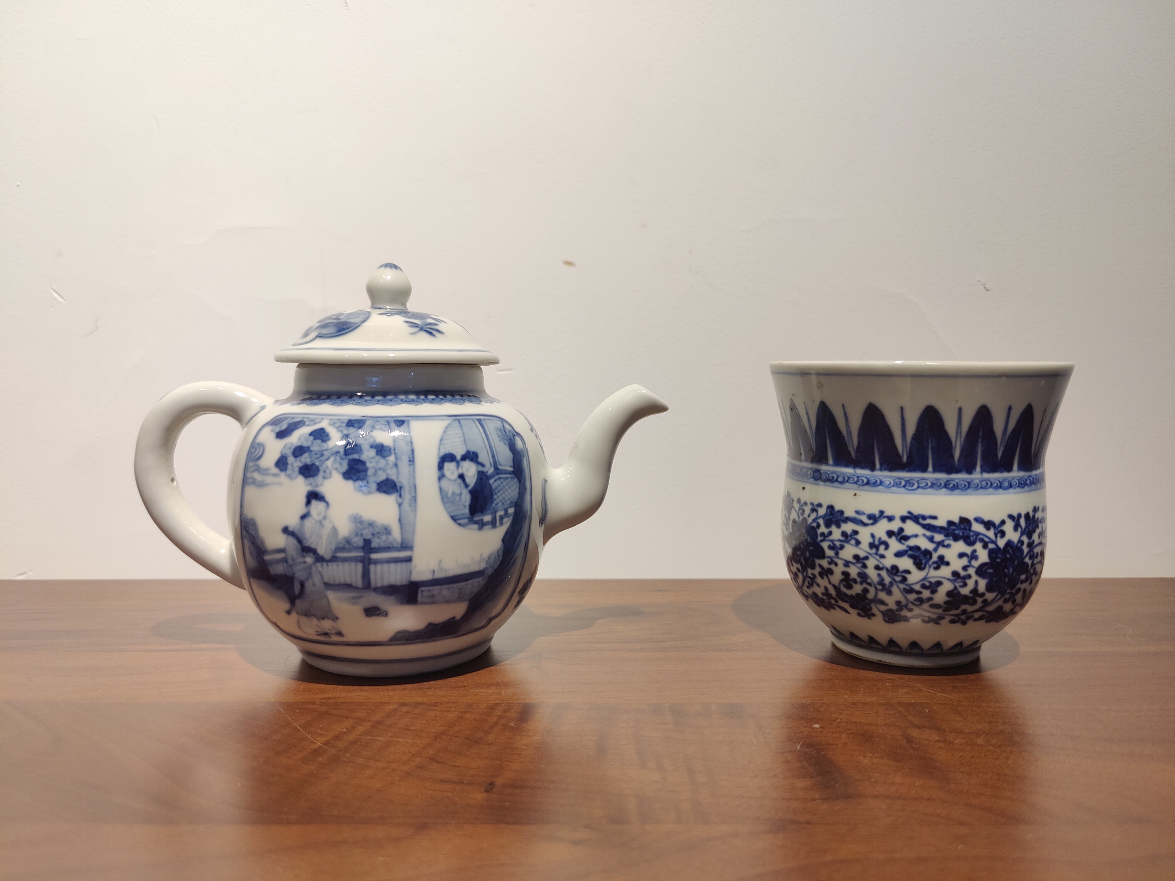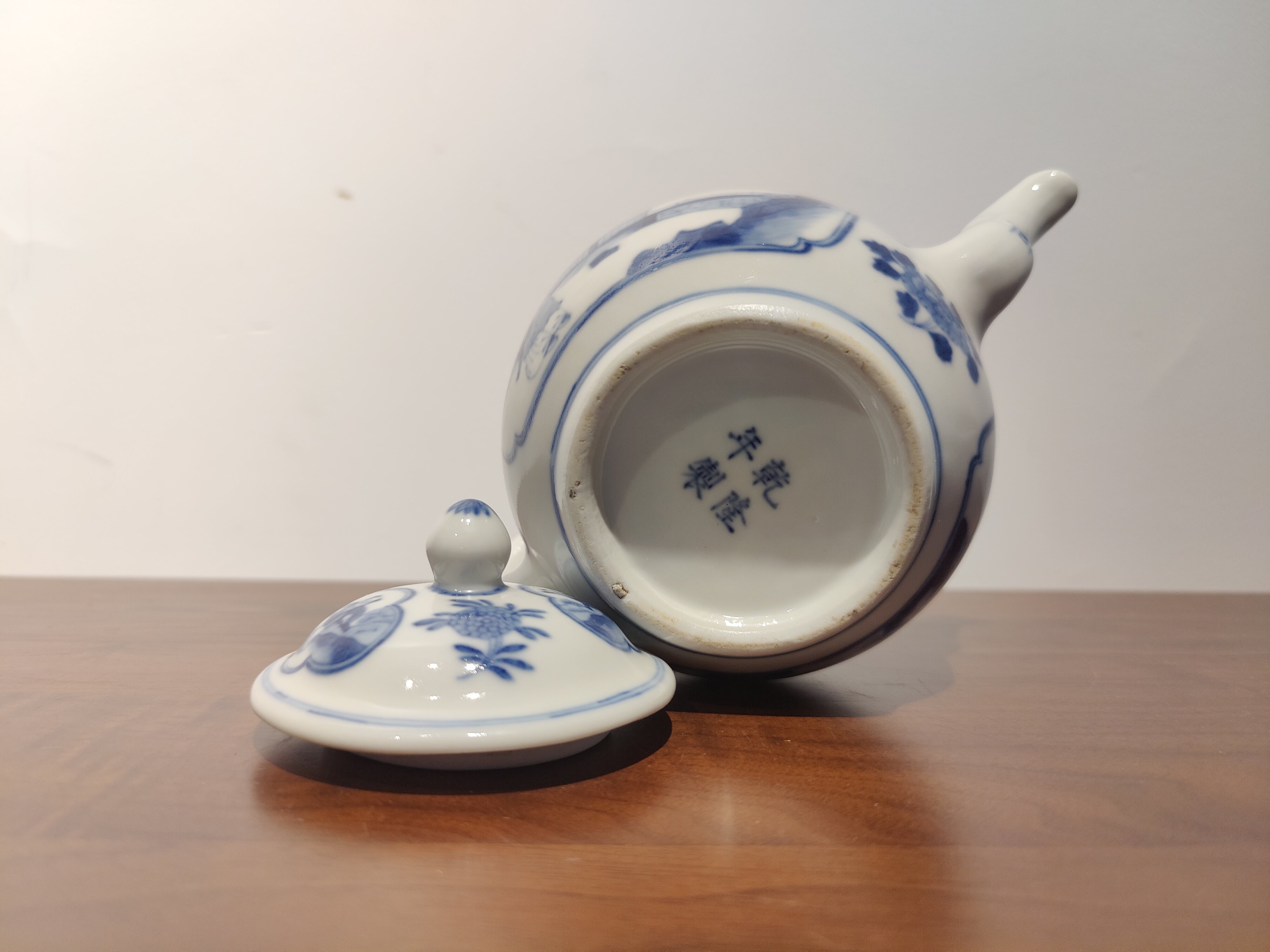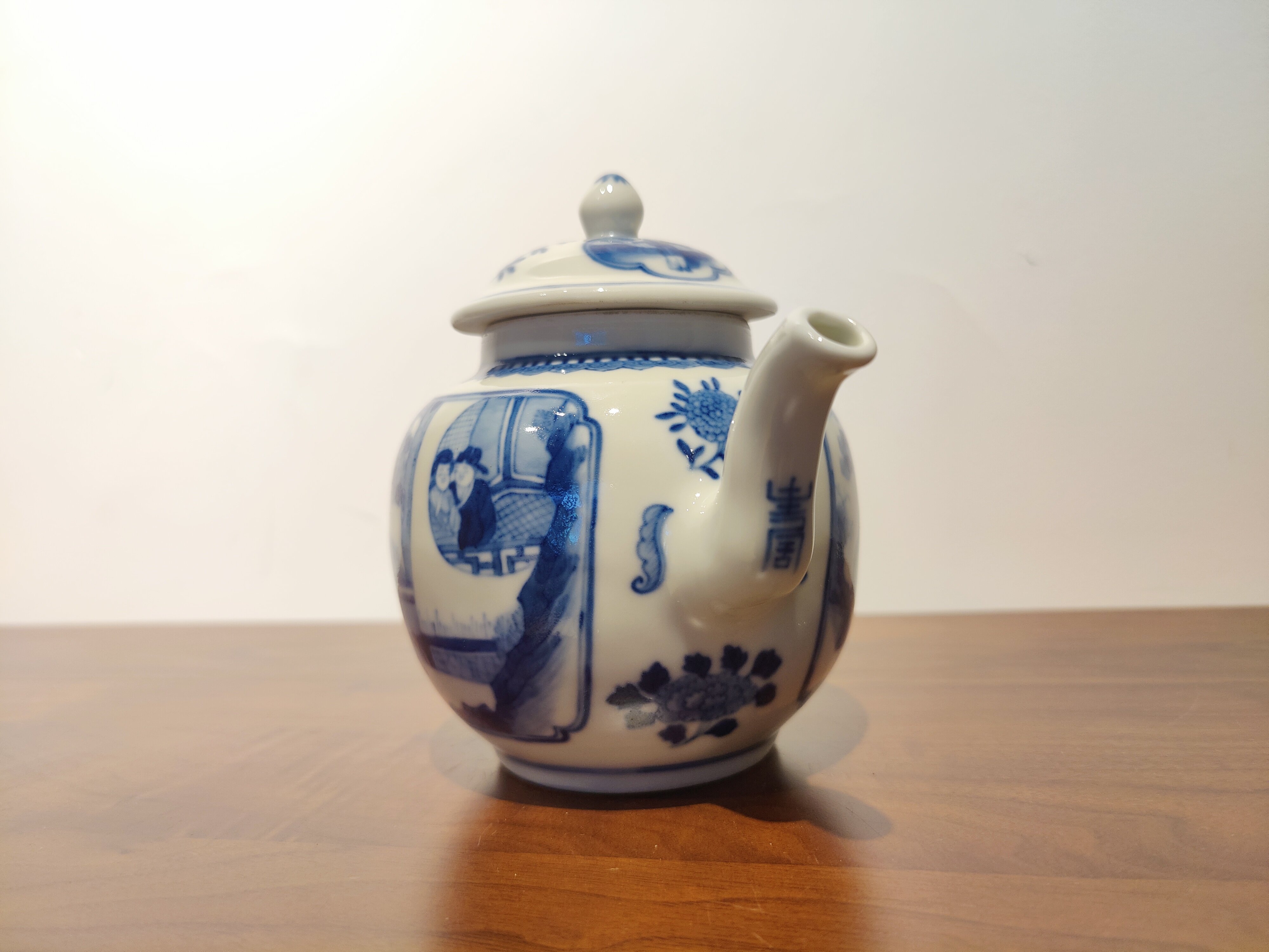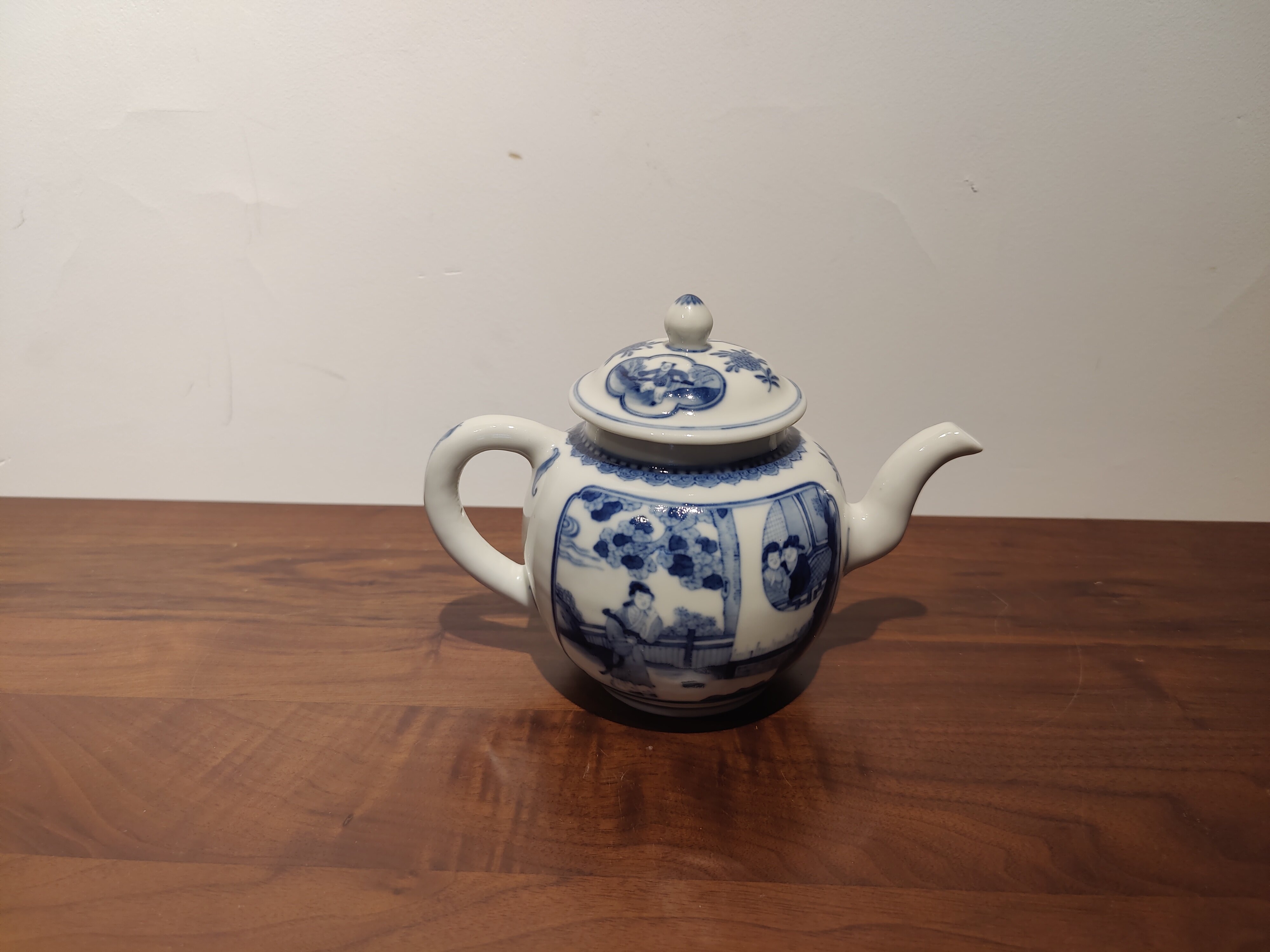 古器物清乾隆時期茶壺手繪青花人物圖