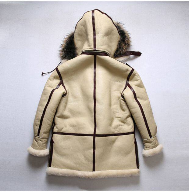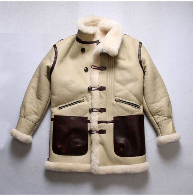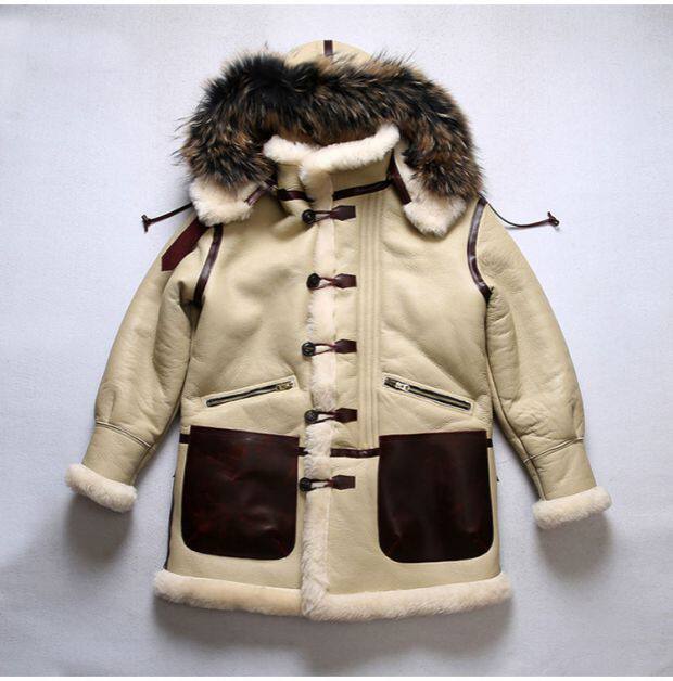 二戰美軍轟炸機飛行員B7飛行皮衣,也被稱為B7寒帶派克服(PARKA), 皮料:澳洲加厚綿羊皮皮毛一體,毛長18毫米,皮厚4毫米, 手感:柔軟肥嫩, 顏色:復古二戰白, 重量:2.5公斤, 拉鏈:泰隆。 配皮:棕色馬皮, 帽子:可拆卸, 款式:中長款, 衣長有80多厘米,絕對良心制作,很少有這么用料的真貨!扣子:原生態牛角扣, 整衣有80尺皮,進口澳洲皮毛每尺的價格可以百度查,光皮毛成本價值其他什么都不算就要市面那些普通皮毛一體, 專柜售價30000元起, 在二戰期間的1941年到1942年之間生產。它專門配發給空勤機組人員和那些在寒冷地區工作的航空人員。 B7寒帶皮衣能夠有效抵御寒帶的嚴寒氣候和暴風雪。B7除了襯有狼毛皮的大兜帽之外,均是由完整的動物皮毛整體剪裁的,所以它在嚴寒惡略地區的保暖性特別的好,由于B7的制造成本很高,特別是在戰爭期間,故而B7皮衣曾一度縮減產量,配發量也是很少,存世的元年B7更是少之又少
