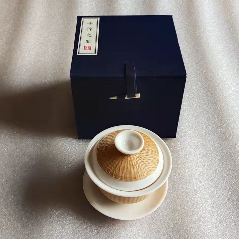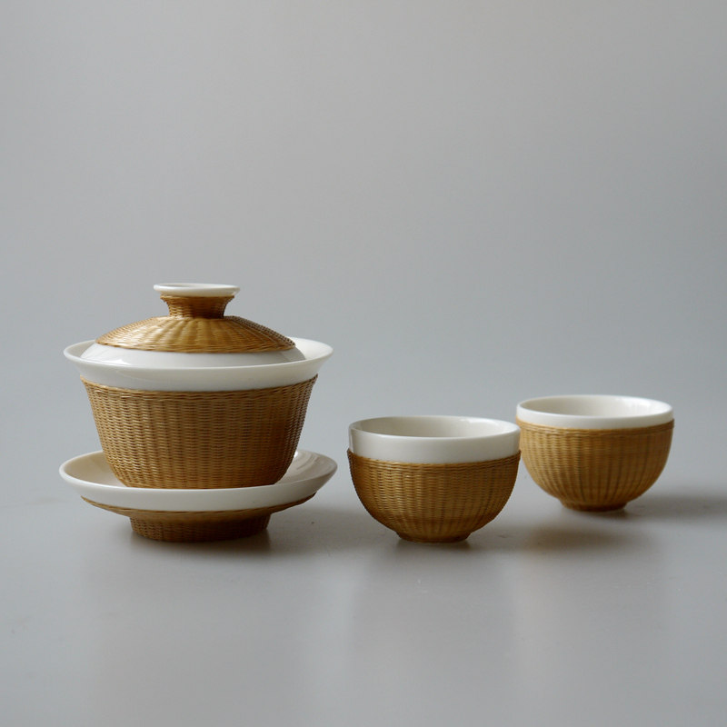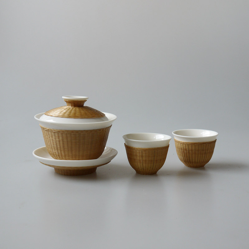 瓷胎竹編特色三才蓋碗