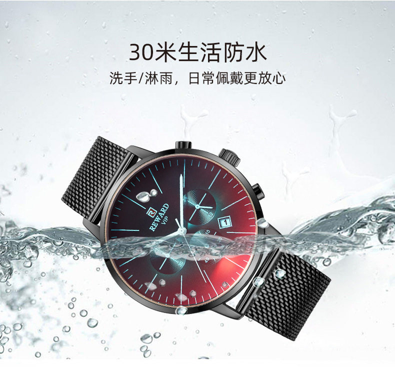 2、抗水裝置之手表30M;普通防水,一般為壓后蓋方式具有抗水氣入侵之功能,但不宜去浸水及游泳,因其只有抗水之裝置而已。