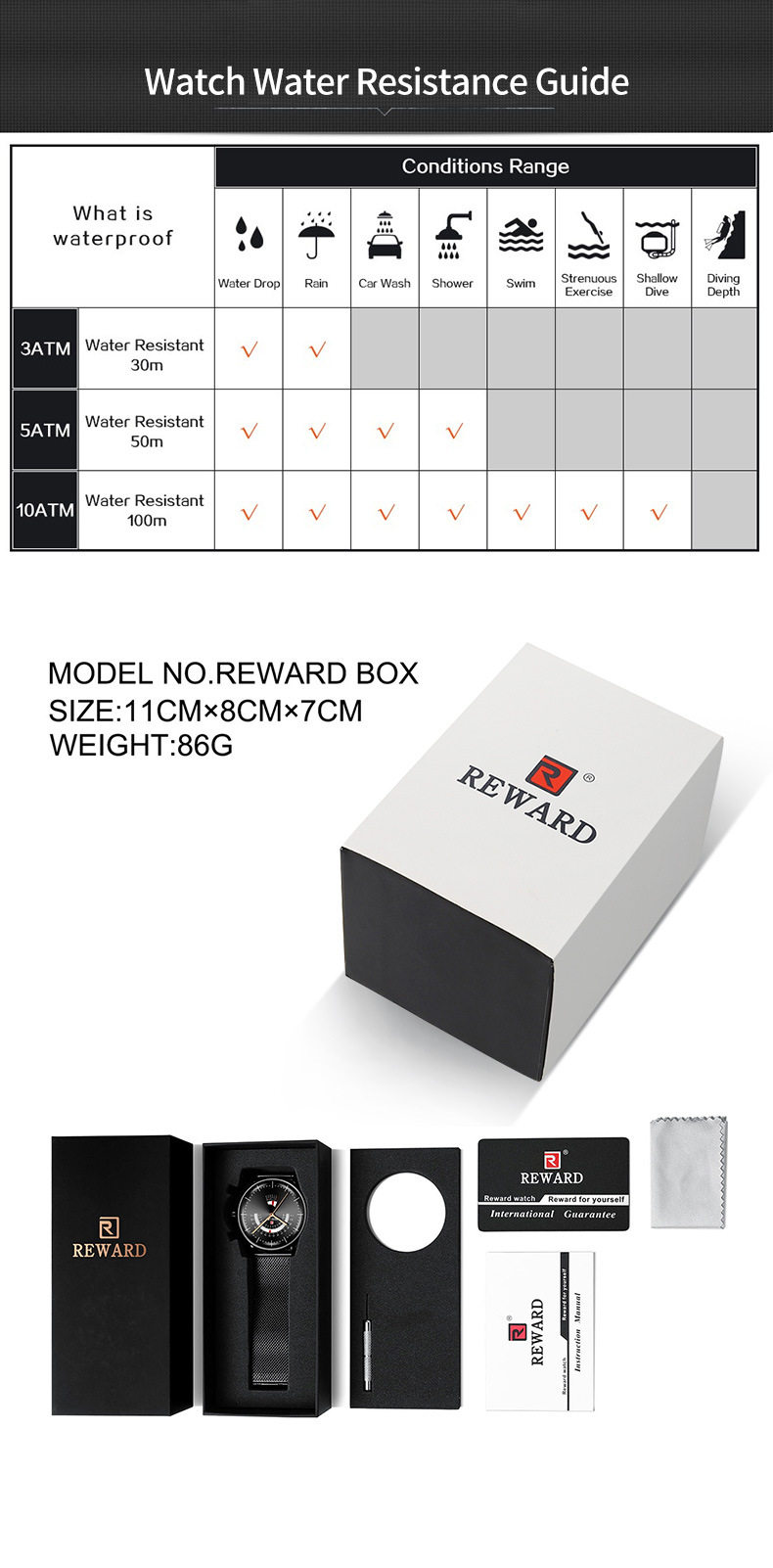 3、防水裝置之手表100M以上,后蓋鎖牙方式,可浸水但不得游泳潛水。