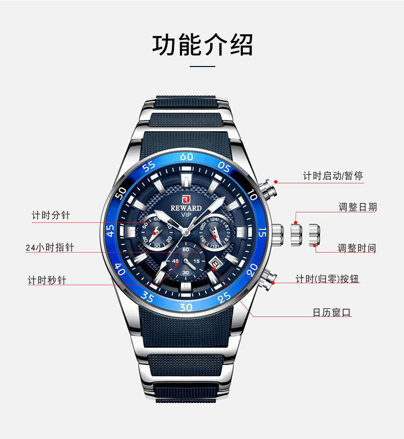 4、潛水手表200M以上;潛水時及平時皆應注意調整時間后一定確實鎖緊各個防水頭