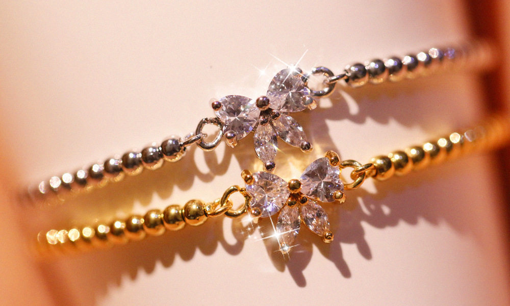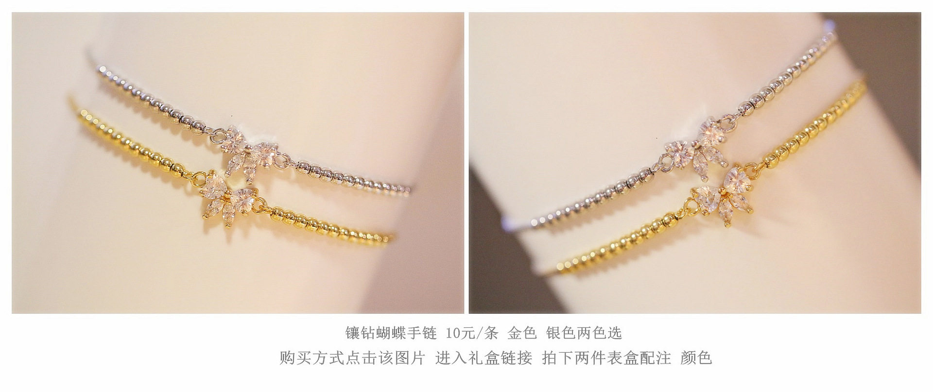 溫馨提示模特佩戴鑲鉆蝴蝶手鏈是需另外購買