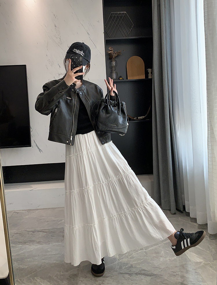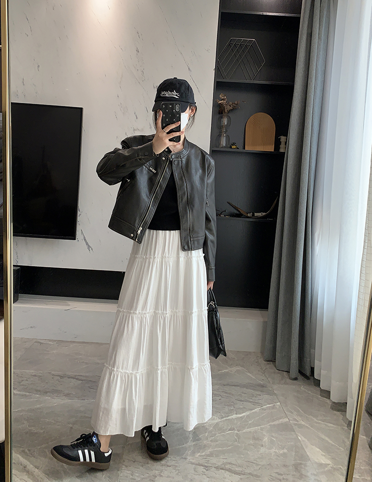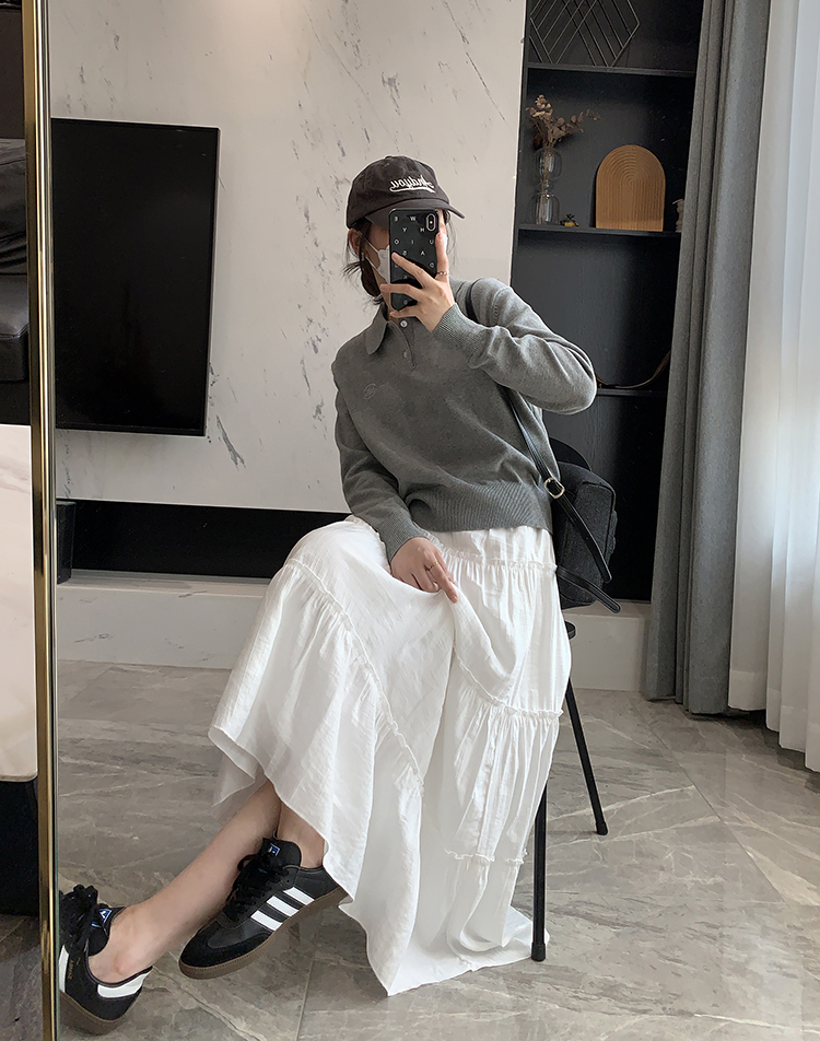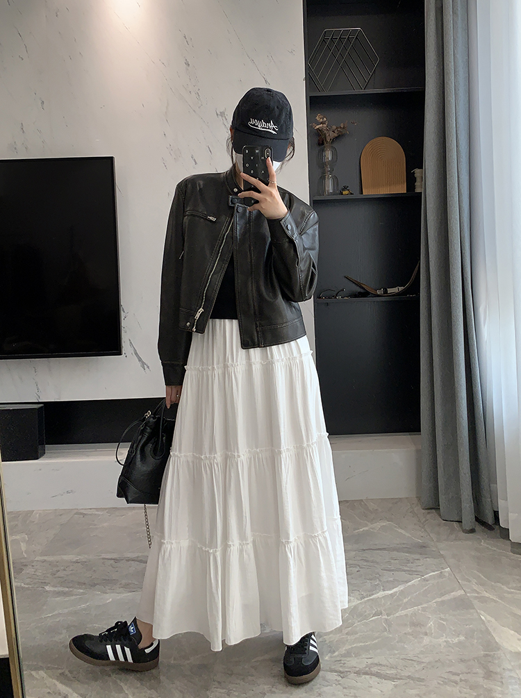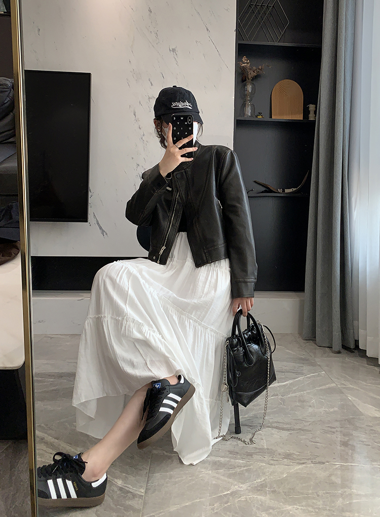 面料自帶皺褶紋理,很好的增加了線條感弱化了對身材的要求~