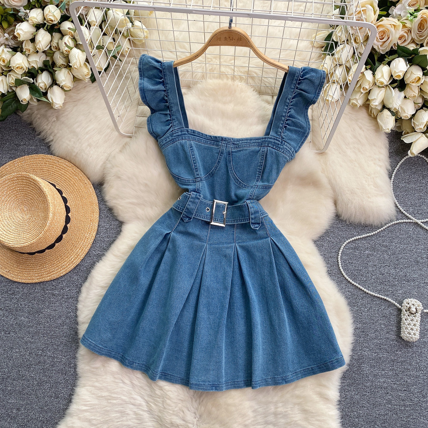 尺寸:S 裙長75[含肩帶]     胸圍80    腰圍62