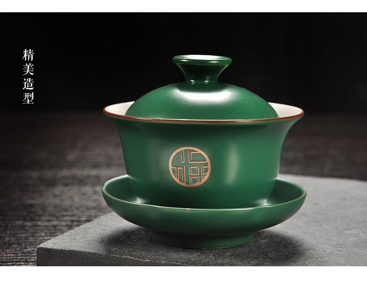 品名:亞光綠色福字蓋碗