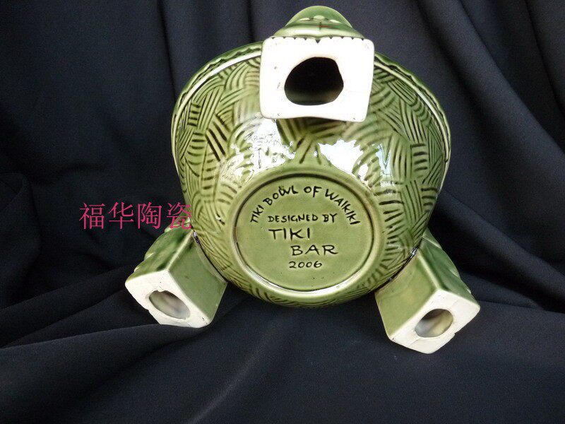 :我們生產的TIKI MUG是真正意義的瓷器品質優勢(ceramic mug),而不是陶器,每件產品都是手工注漿、手工彩畫制作,經1280溫度燒成,鉛、鎘含量達到出口歐美標準。