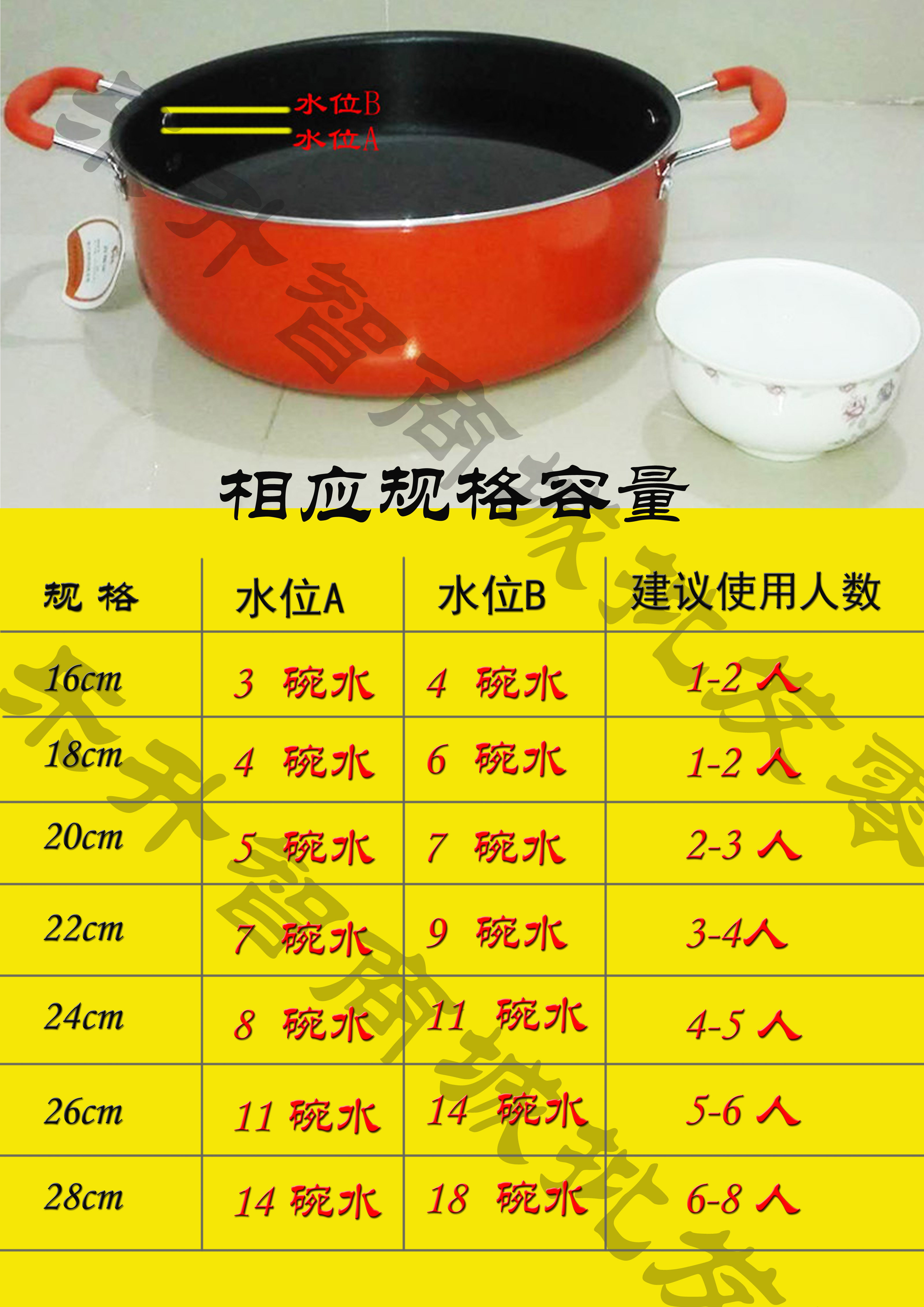 16CM 18CM 20CM 22CM 24CM 26CM 28CM,這些尺寸均指鍋體內部直徑。