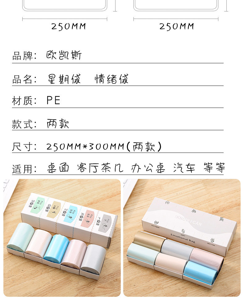 情緒袋:6卷/盒,30個/卷。尺寸:25*30CM