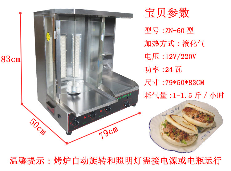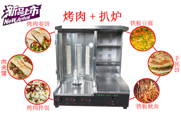 好消息!烤爐扒爐一體機上市啦!烤爐與扒爐相互結合,食物在扒爐上可直接加熱,操作方便。此款機子為多功能組合爐,可以做肉夾饃,烤肉拌飯,煎餅煎蛋,炒菜炒菜,手抓餅,鐵板豆腐,等多種小吃食品。220V跟12V通用設計,流動營業不用愁。