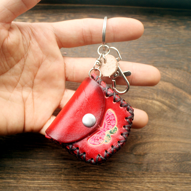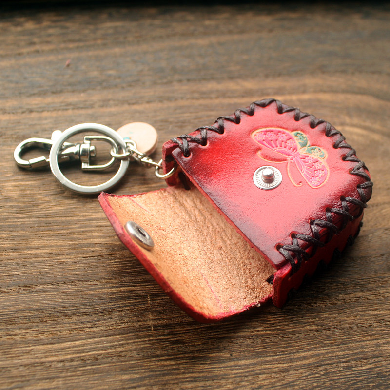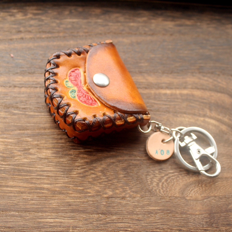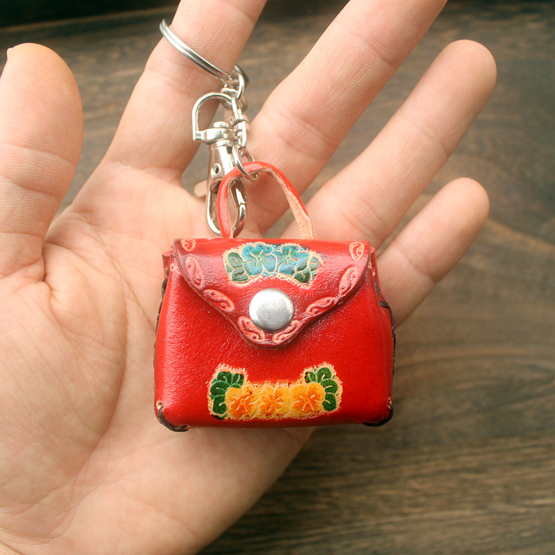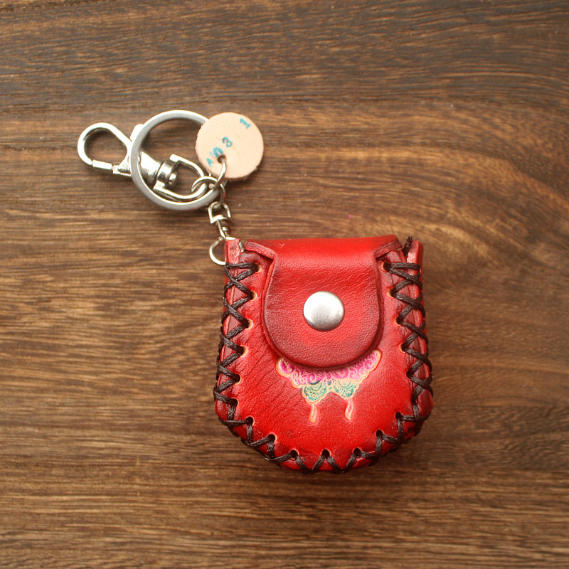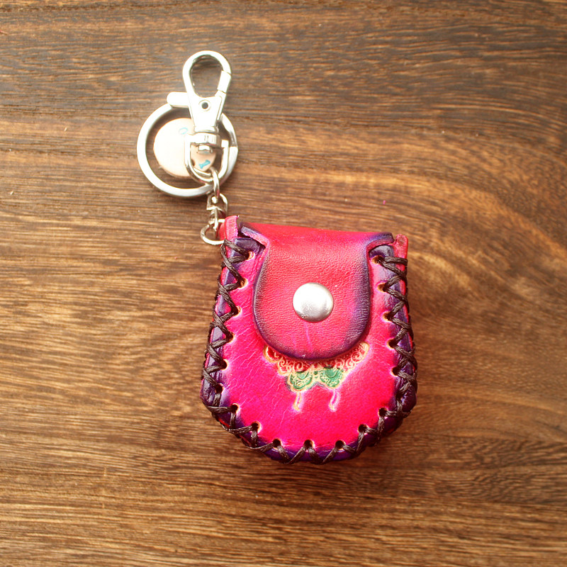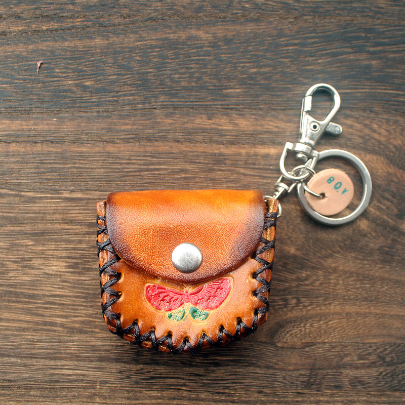 牛皮鑰匙扣零錢包女韓國簡約民族風按扣迷你硬幣包可愛耳機收納包